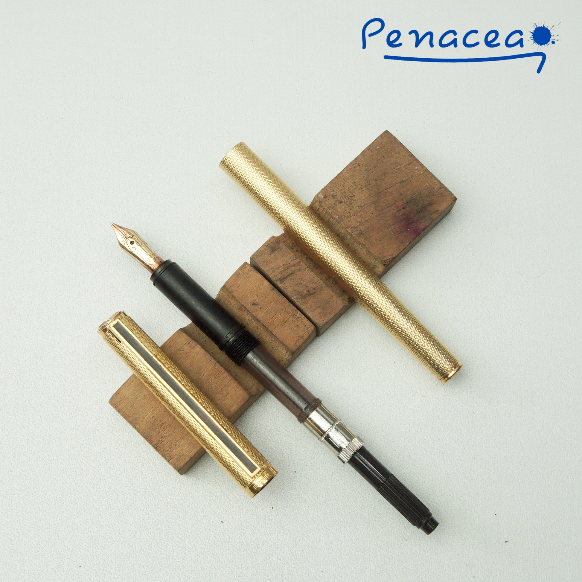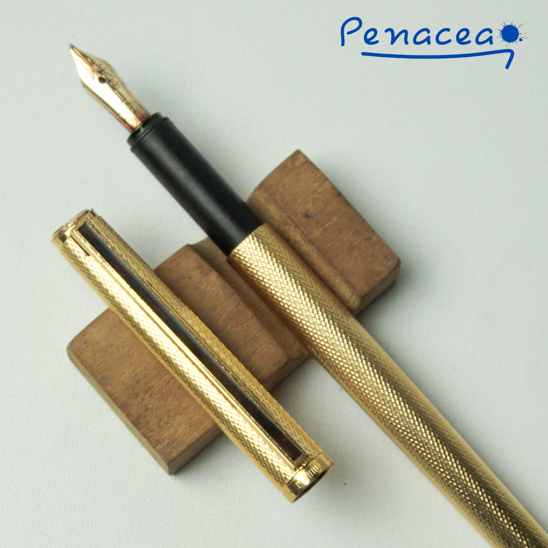 ALFRED DUNHILL GEMLINE BARLEYCORN GOLDPLATED WITH EBONITE FEED FOUNTAIN PEN (Early 1980s)