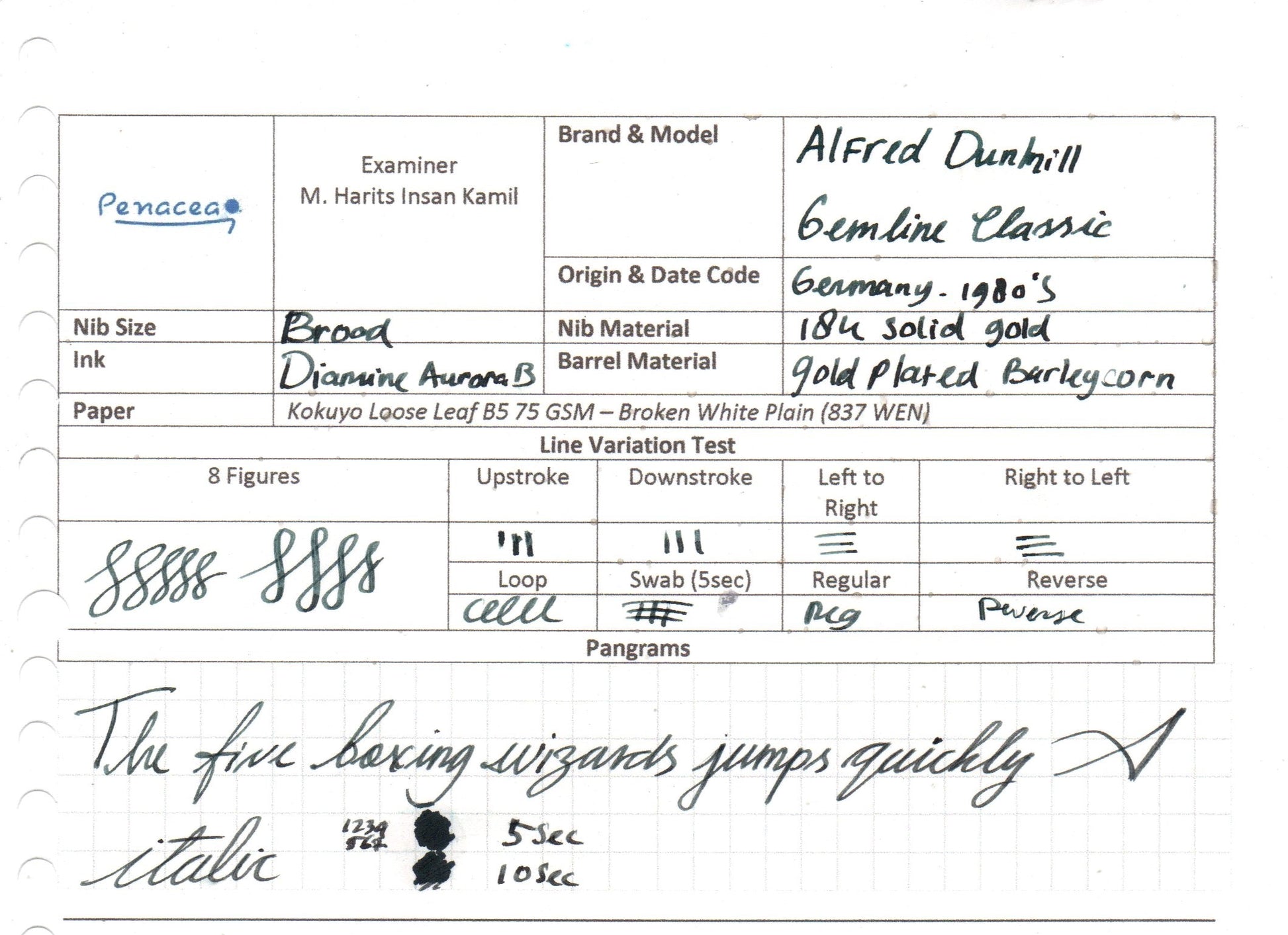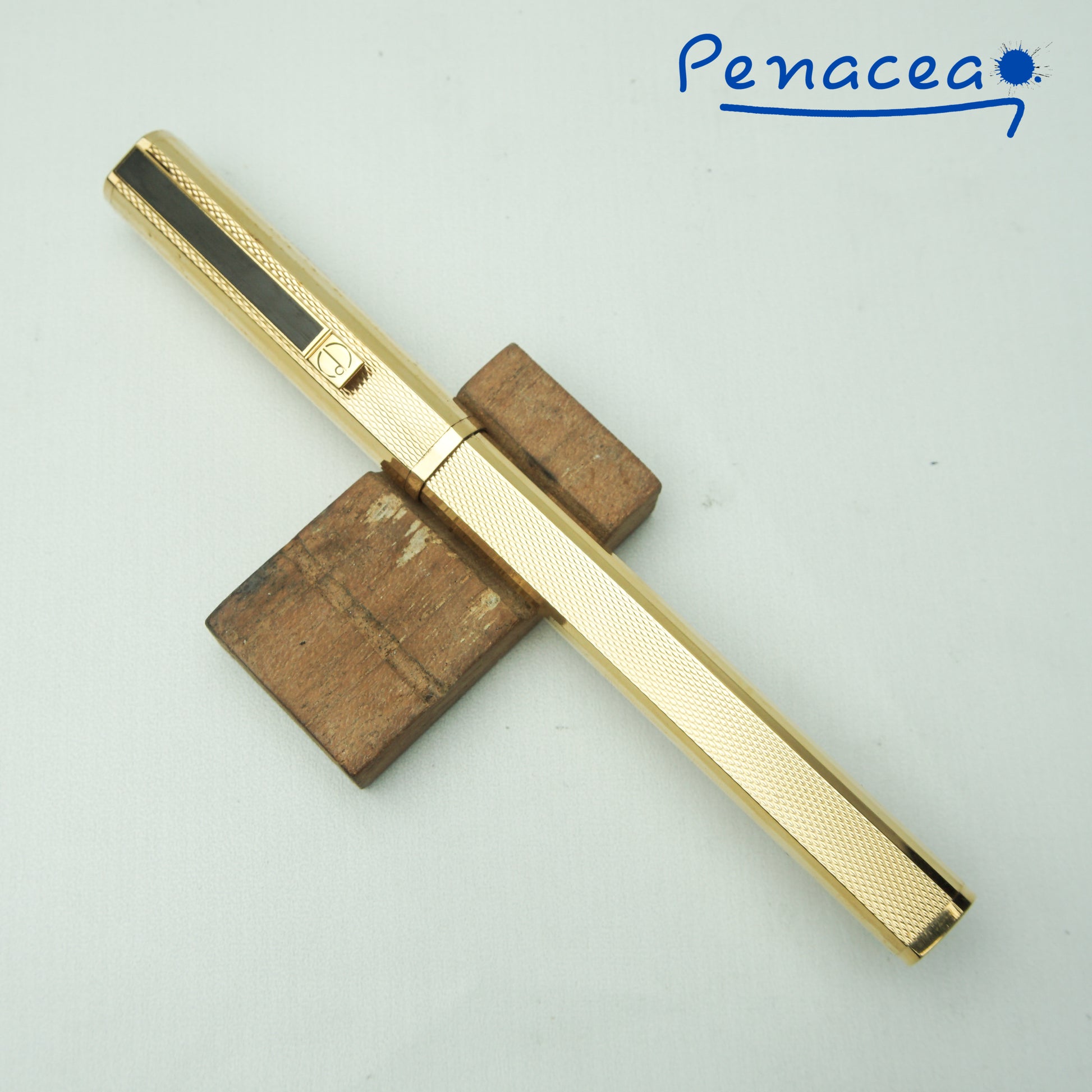 Faceted barleycorn with goldplated Dunhill Gemline Classic made by Montblanc in late 1970's. Pen is in superb condition inked once (for writing test purpose). Complete with box, fitted with 18K gold nib & ebonite feed. Dunhill converter included.