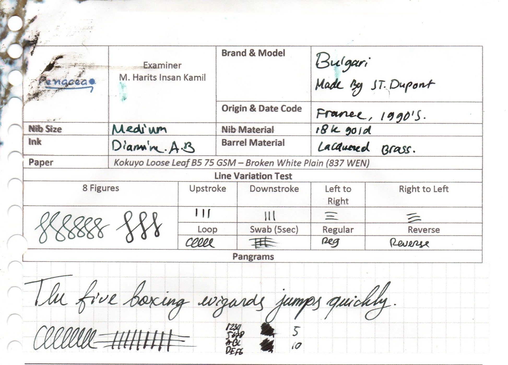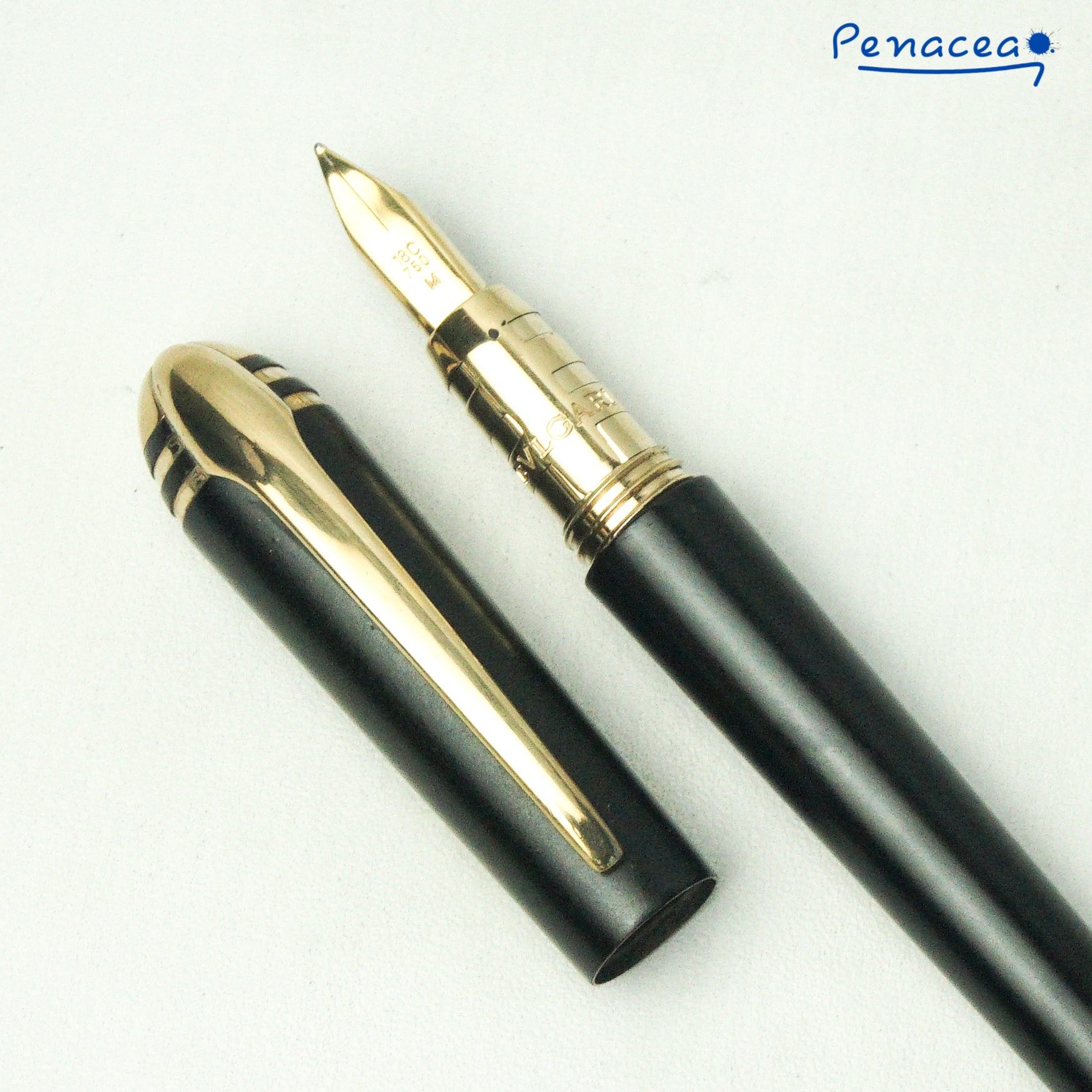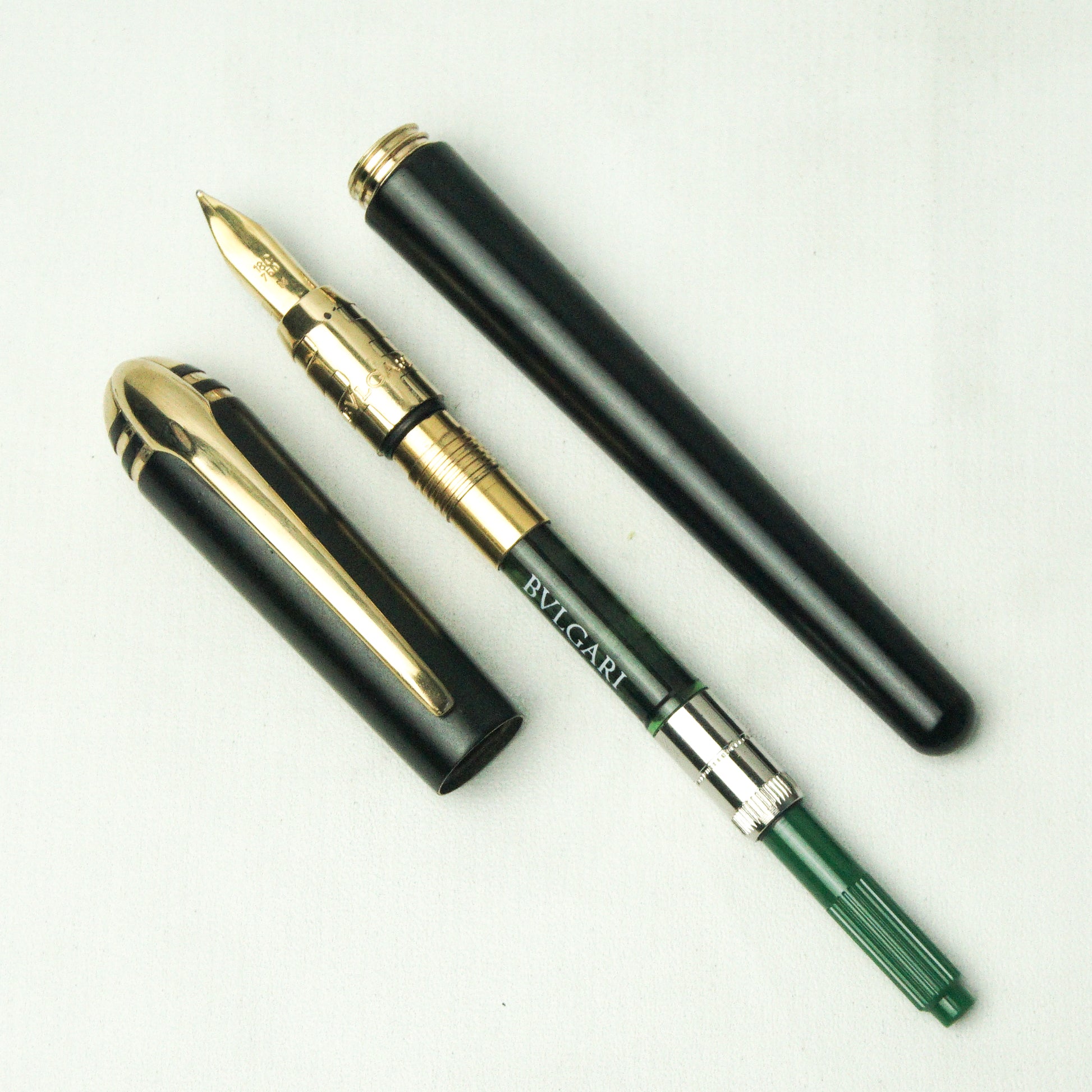Luxury fountain pen from Bulgari with decent build, uses epoxy matte black finish and goldplated brass clip. The pen itself was made by Caran D Ache Switzerland, the nib and feed construction are similar to CDA Hexagonal Eccaile