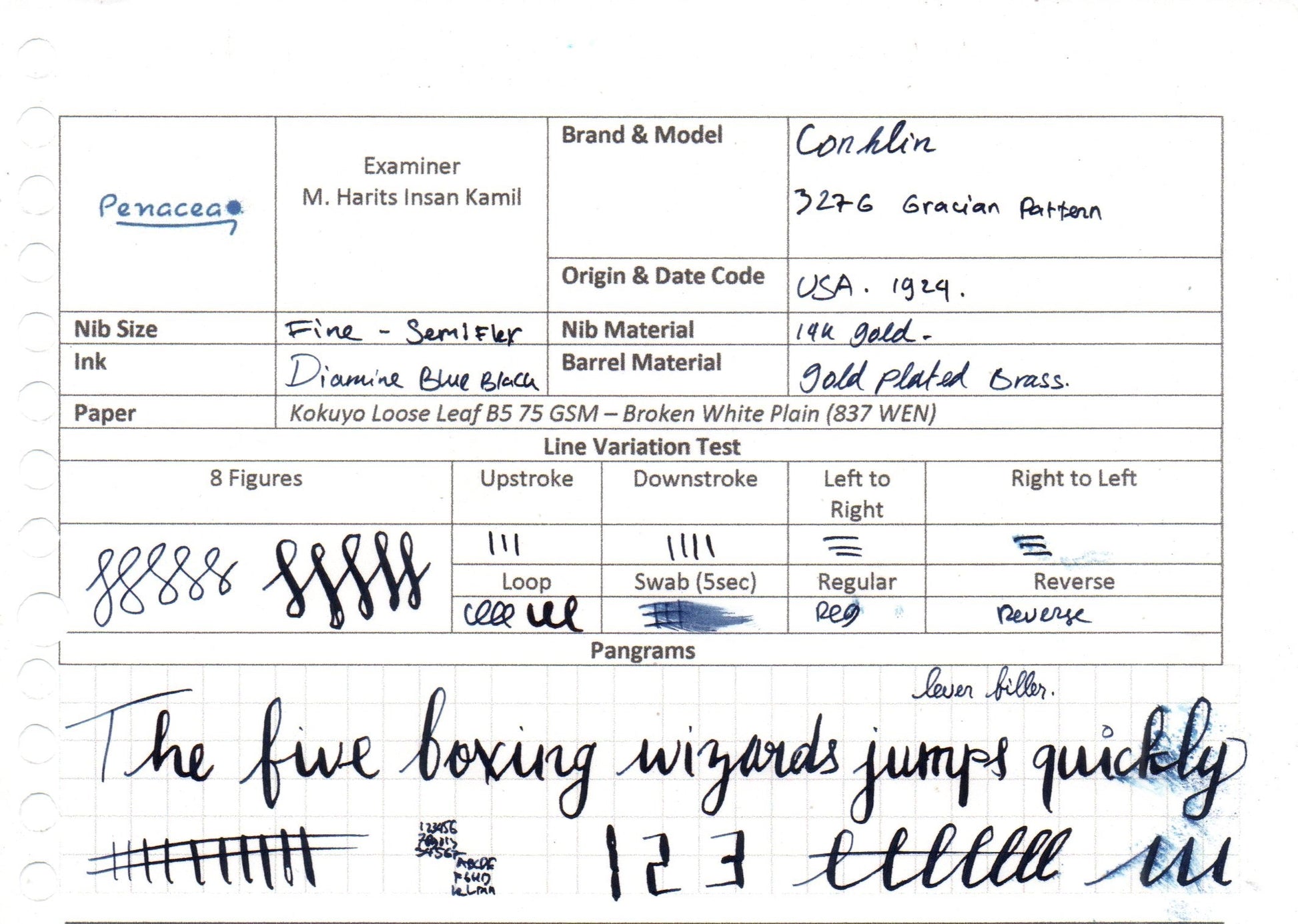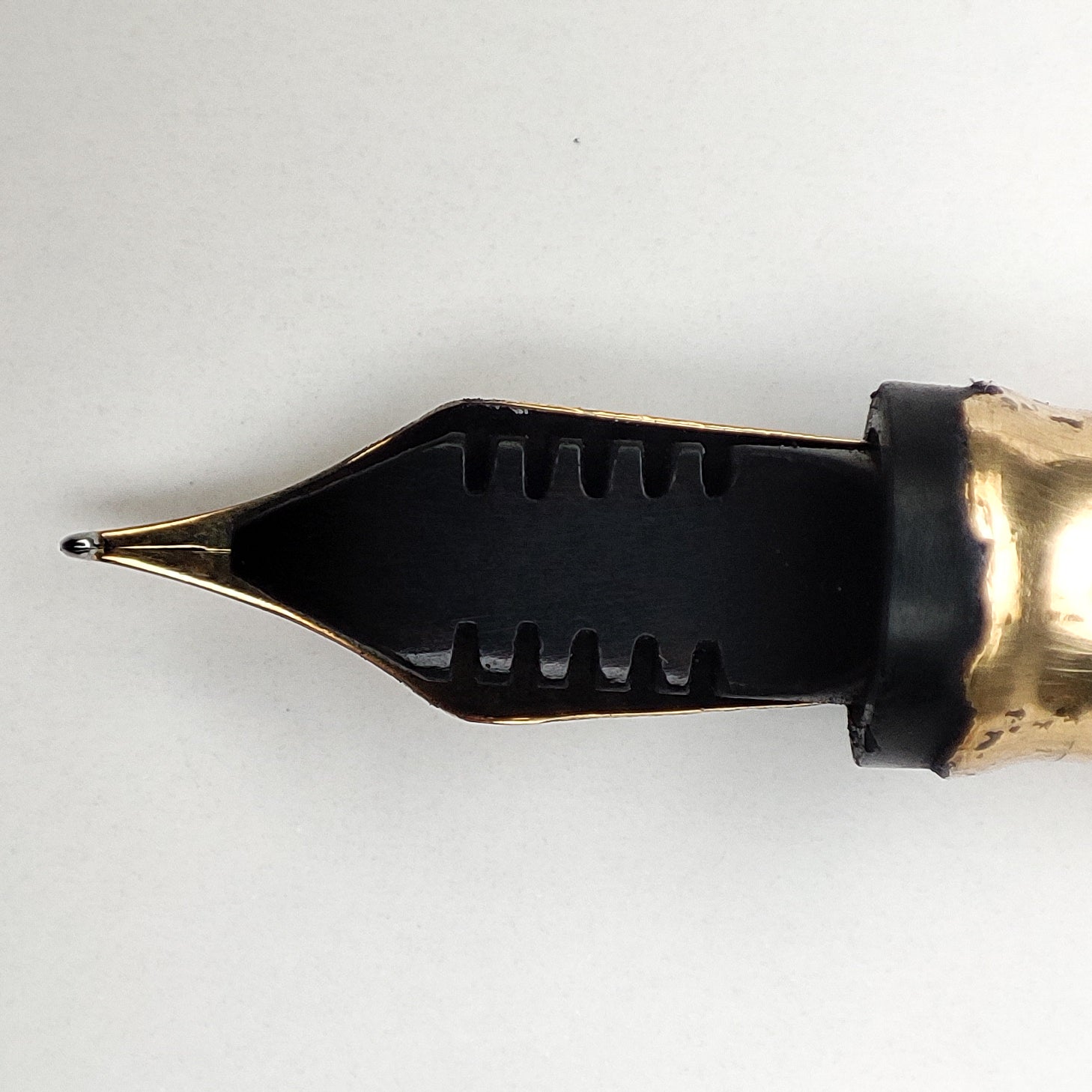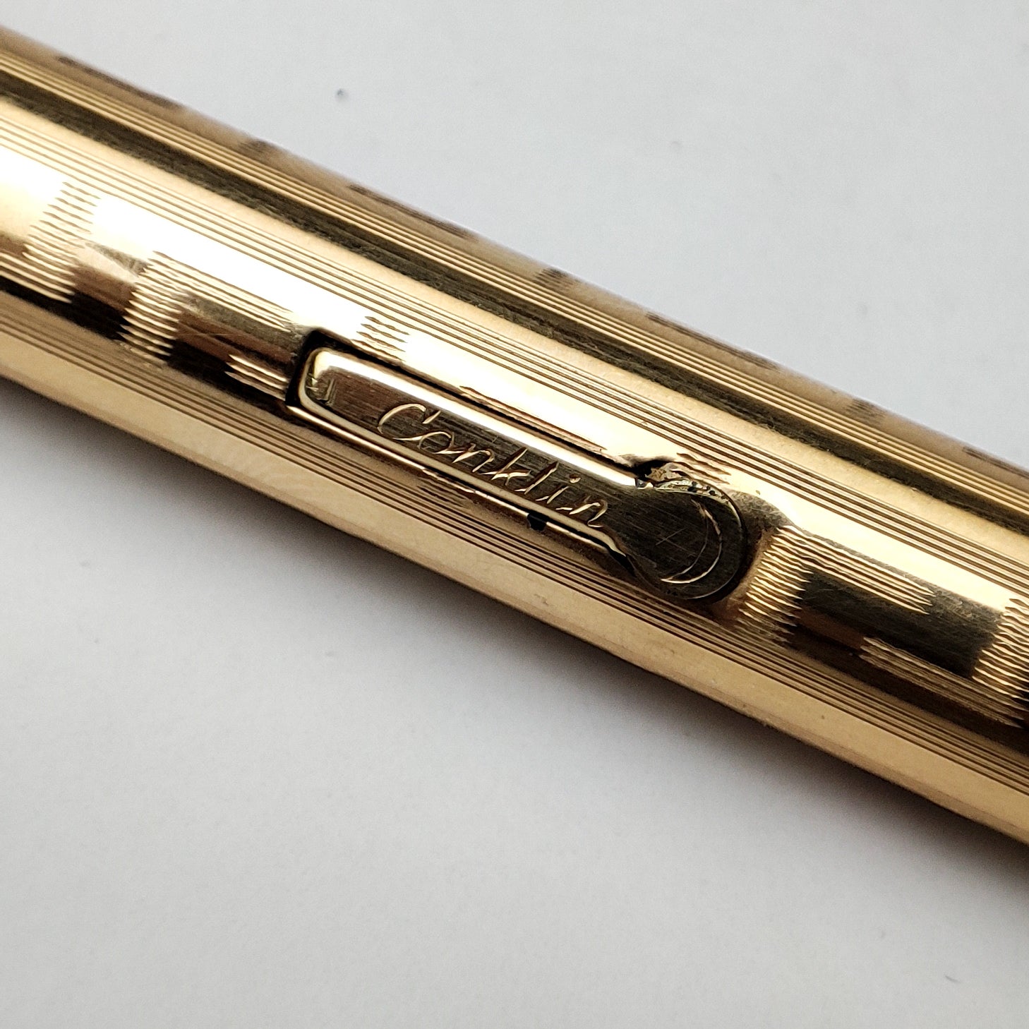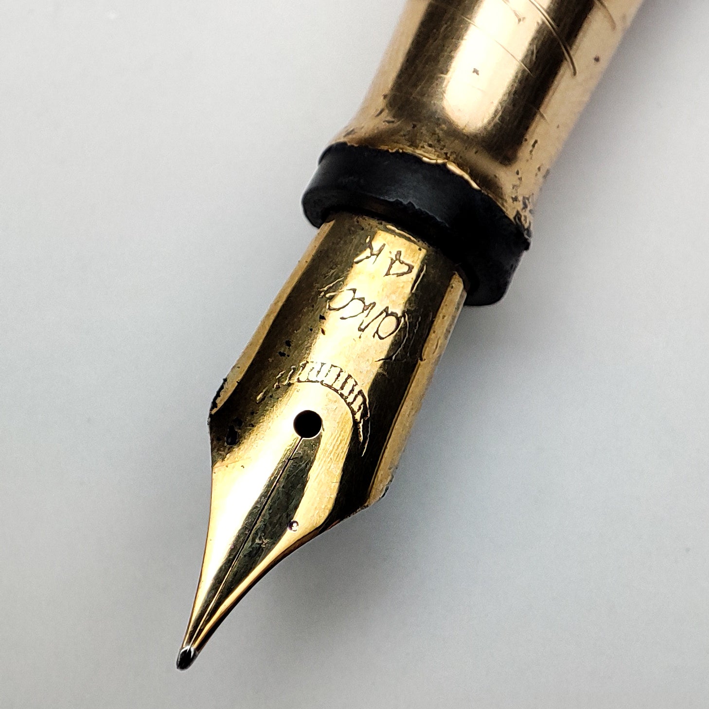 First spotted in Conklin old catalog released around 1924 featuring goldfilled brass gracian pattern and lever filler. This pen already cleaned and fitted with new inksac to ensure its functionality. There are major scratch on the grip section. The nib itself is a semiflex with wet inkflow able to produce crisp stroke from F to BB.GRADE: D, GOOD CONDITION (Read our pen grading classification here)