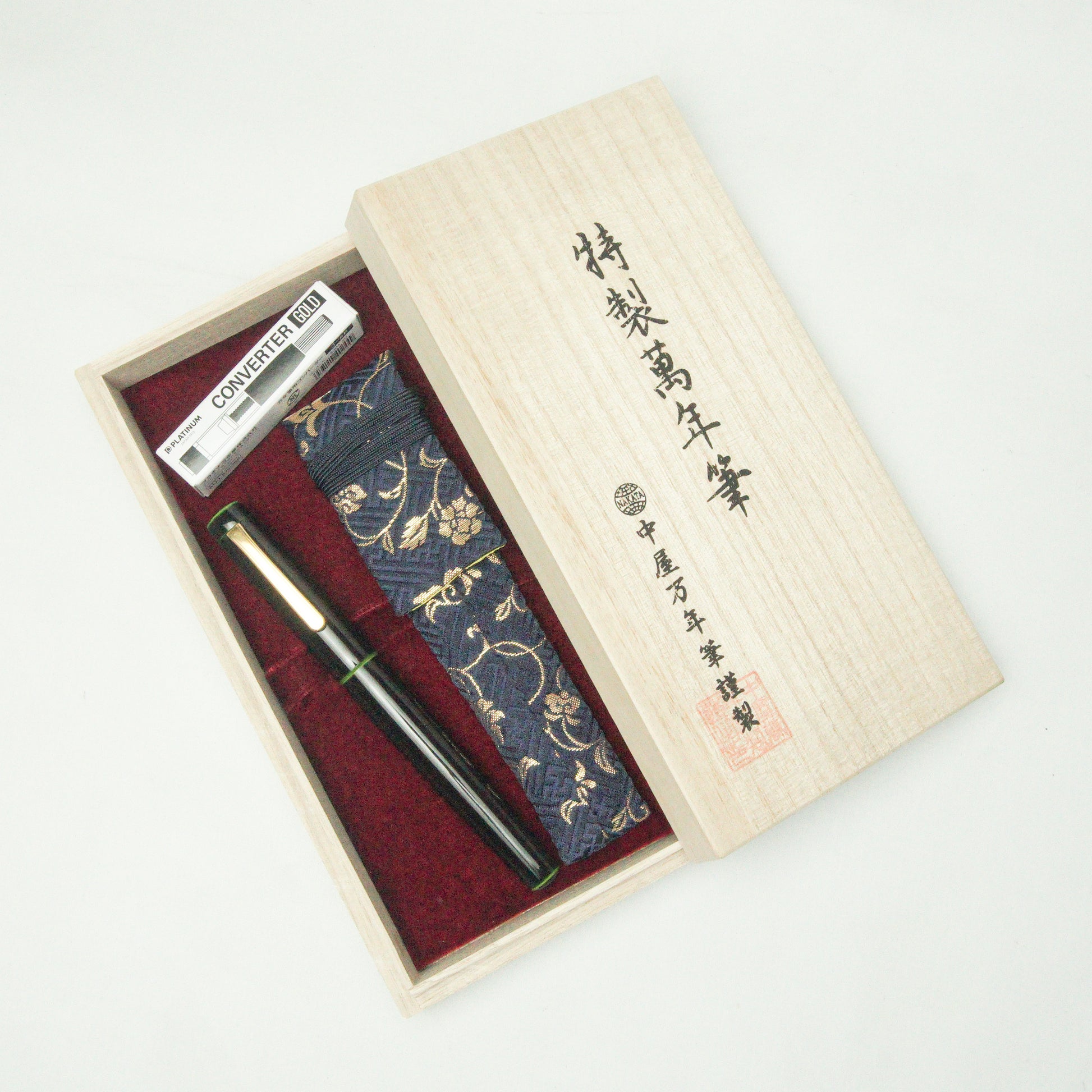 Tamenuri's an ancient practice of Urushi lacquering in Japan. Translucent Suki Urushi is used for the specific base coating, giving it a highly distinctive black patina which will naturally and gradually be complemented by use over time. Brand new pen full set with wooden box, paper and Platinum converter.