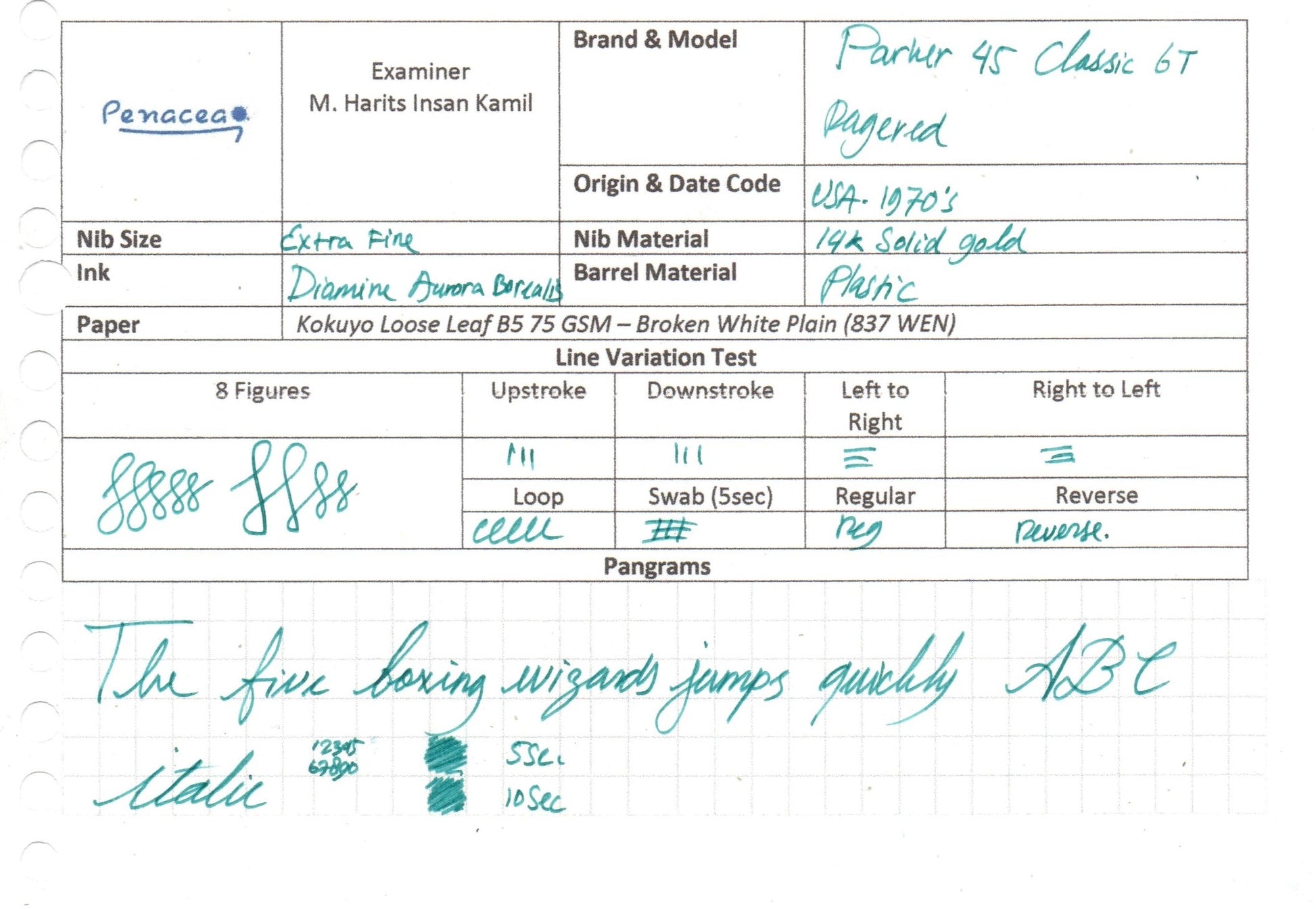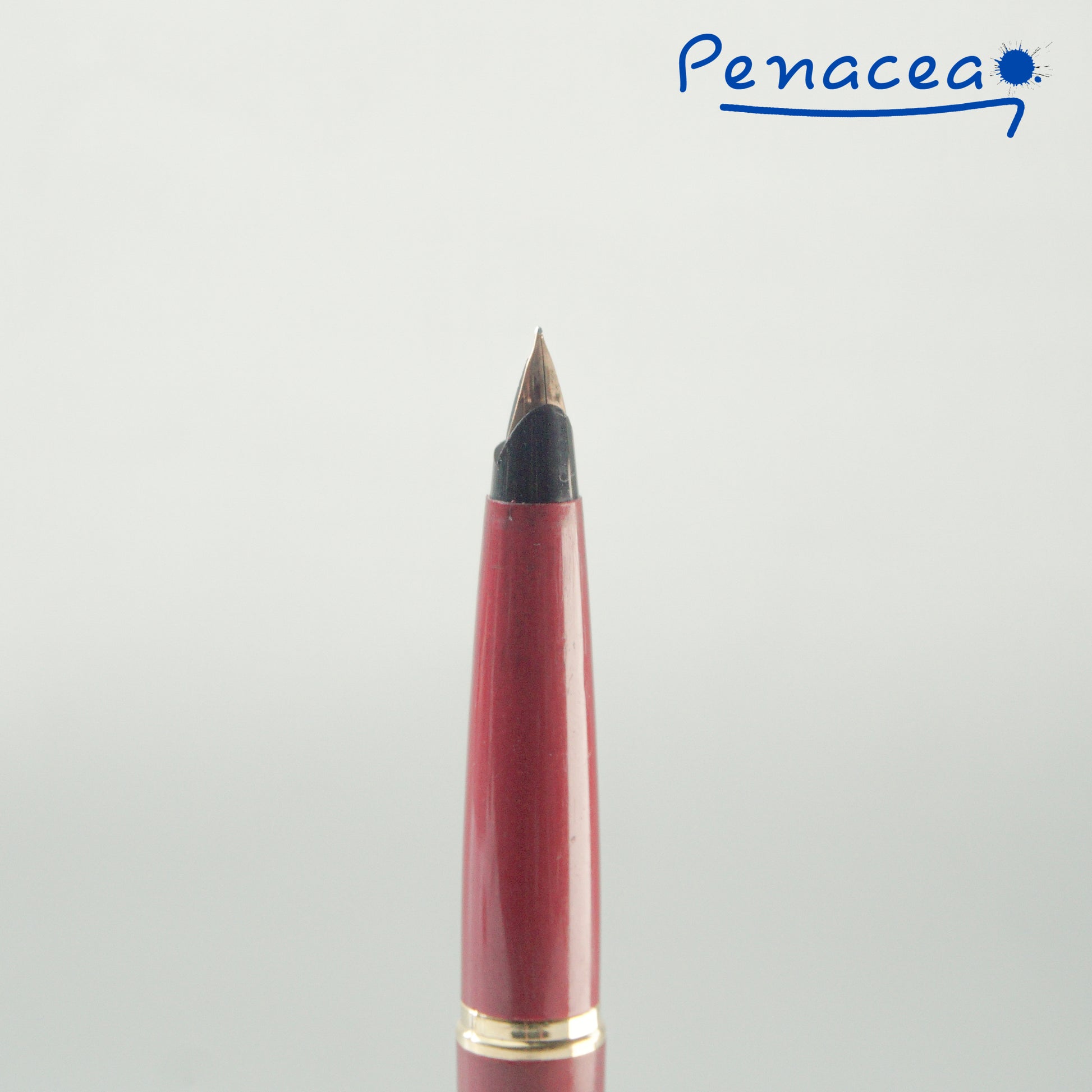 Parker 45 Classic with red plastic barrel & front grip and gold trim. This Parker 45 made around 1970's fitted with Extra Fine 14K nib, the nib is sturdy with beautiful narrow strokes perfect for daily writing, Original Parker 45 converter are also included.