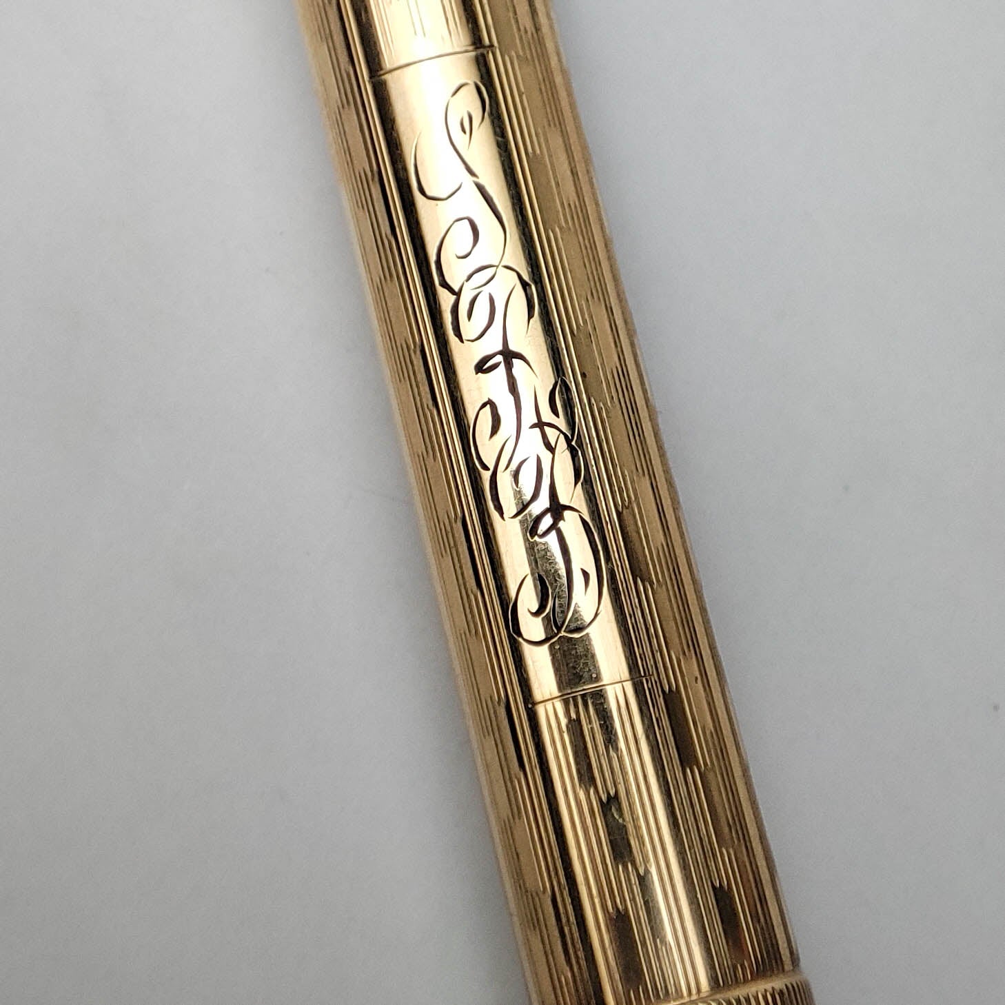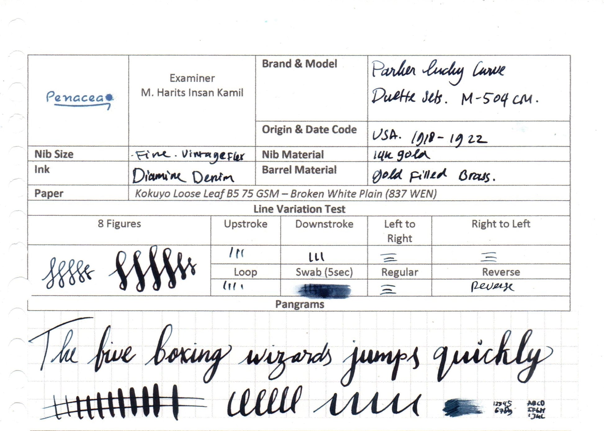 This particular pen named as Parker Lucky Curve 'metal pen' featuring a set of Fountain pen & mechanical pencil with decorated barrel and 3 finishes with yellow gold filled, green gold filled and sterling silver. This pen also featured in 1922 Parker catalog, its called Duette sets offered in pair of FP & Mechanical pencil with a retail of $9 to $13 depending of the material finishes used on the barrel & cap. The name of Duette itself are more popular with one of the Parker pen model released in Thrift time era (Parker Duette 1932-1934) which often confusing to some people to trackdown this pen model name & variant. Pen already been cleaned & fitted with new ink sac, the overall condition of this pen is in very good condition although there is customization on the barrel. the nib is very wet and flexible.
