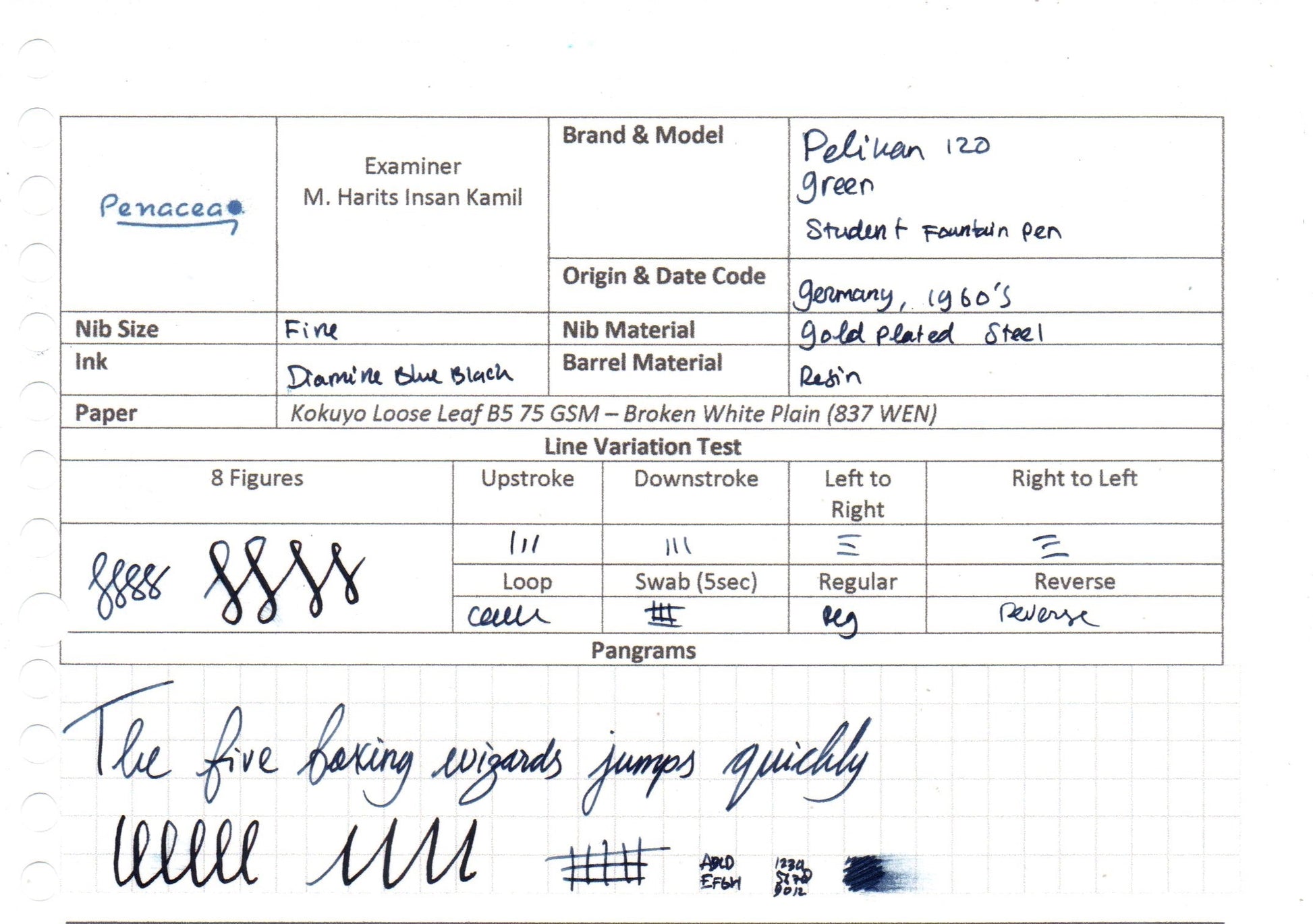 The shortest version of Pelikan 120 variant released in around 1955-1960's as a student fountain pen. This particular pen is the first version of Pelikan 120 with flat cap band, vertical fin ebonite feed and goldplated steel nib, goldplating are still intact without personalization, there are slight brassing on the cap band & clip, piston works really well and the nib writes smoothly with crisp fine line.