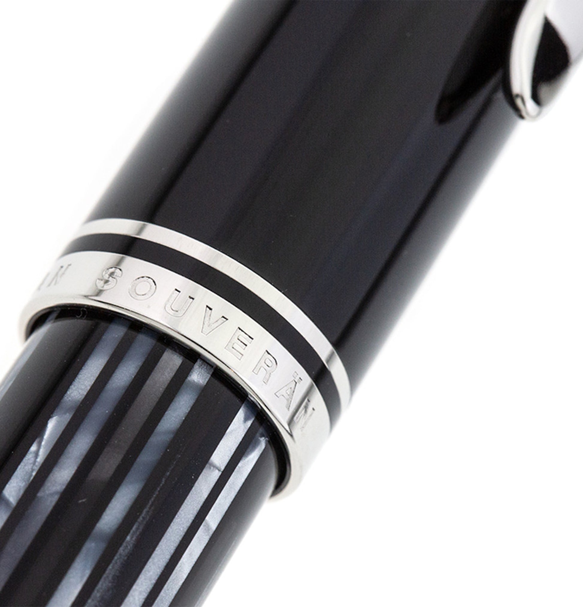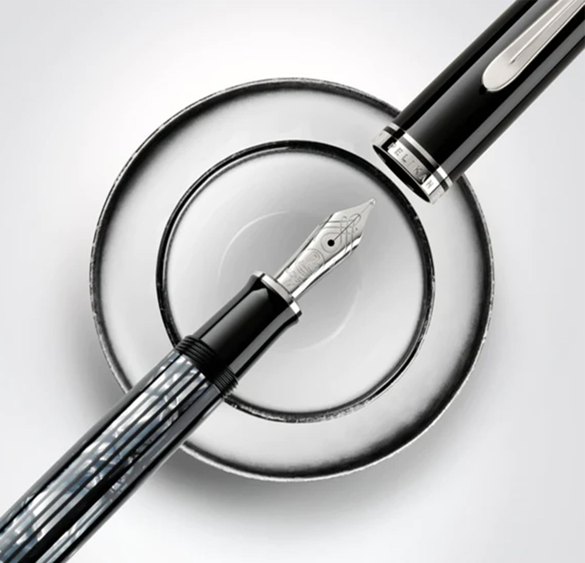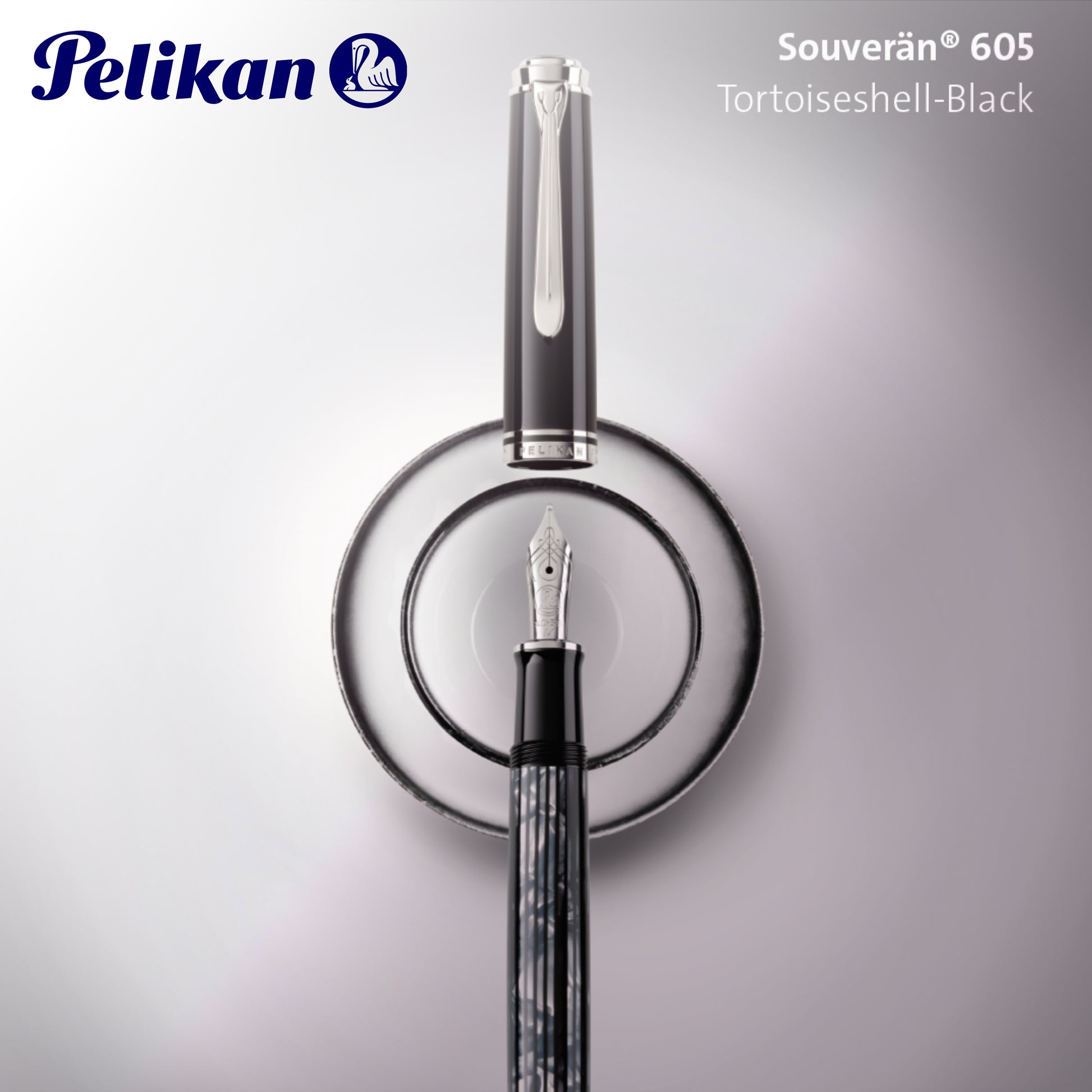 The Souverän is a renowned and timeless classic. Its manufacturing process for the tortoiseshell material involves a meticulous series of steps developed exclusively for Pelikan. Cotton material is transformed into a striped piece, which is then carefully shaped and polished with a diamond to achieve the desired contours. The distinctive characteristic of the tortoiseshell material lies in its subtle transparency and the various shades of color that create a captivating shimmering effect. Prior to being polished to a brilliant finish, the palladium-plated rings on the grip and cap are meticulously and precisely placed on the pen. The high-quality writing instrument is further distinguished by the characteristic and slightly flexible Pelikan beak clip, adding to its unmistakable design. The Souverän M605 piston fountain pen is equipped with a 14-carat gold nib that is rhodium-plated.