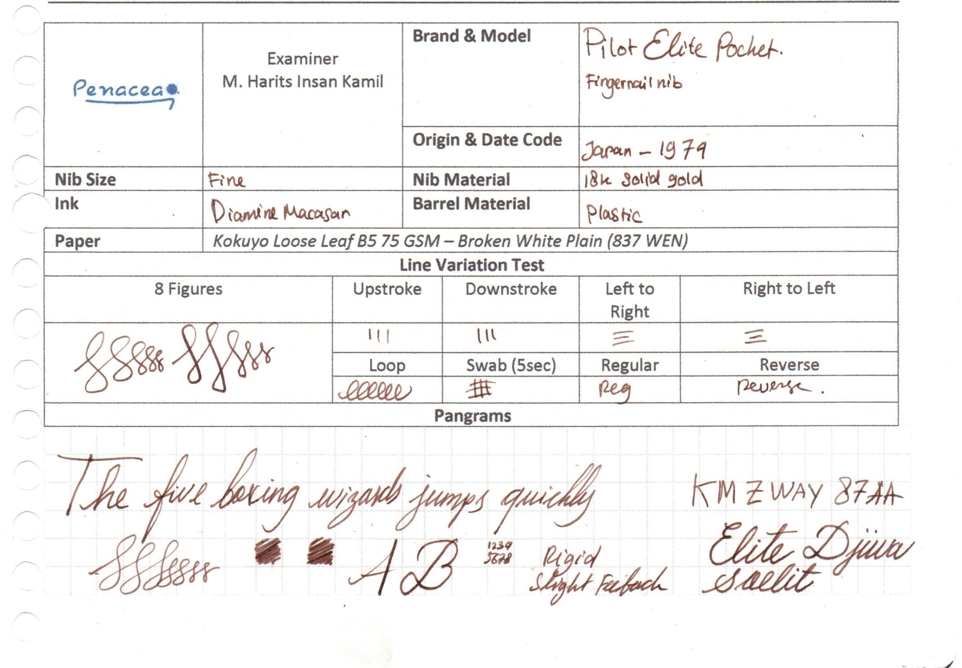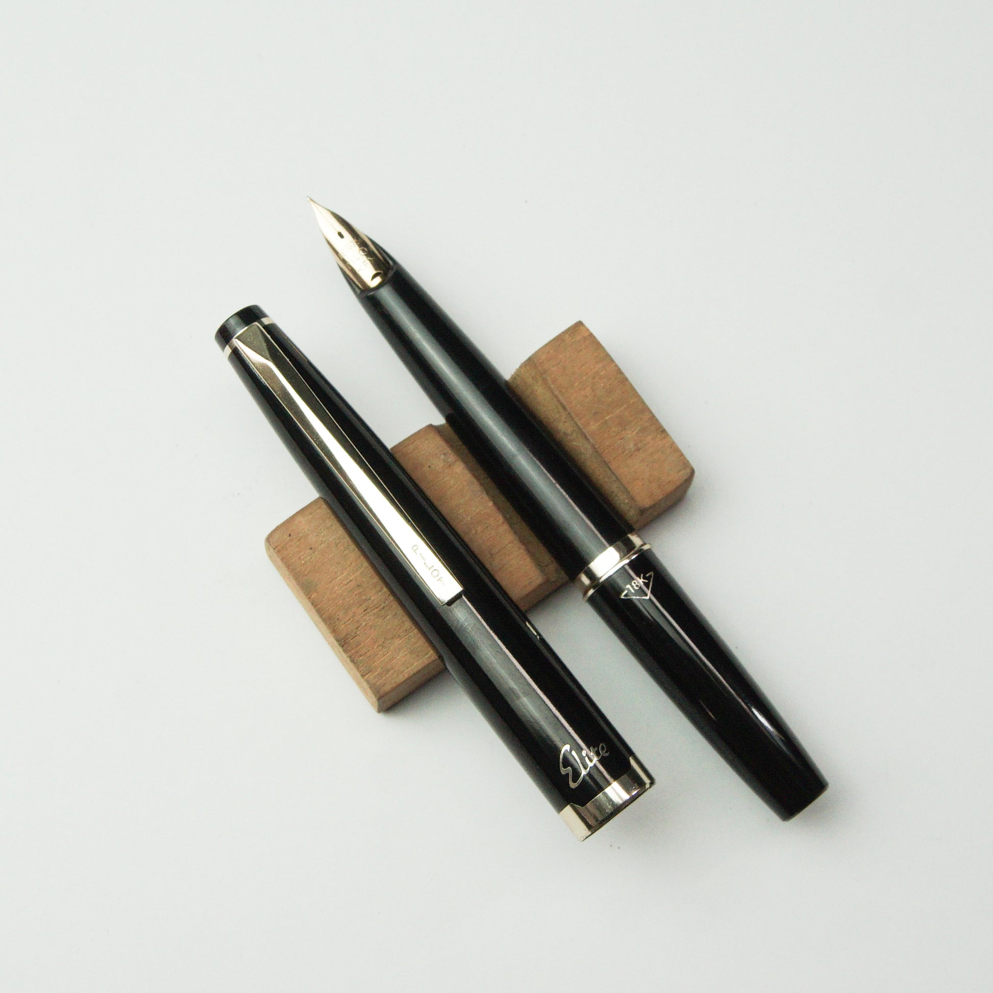 1970's Elite in pocket fountain pen format with 18K fingernail nib, nib are stiff & and rigid. Plain and simple with no line variation & ink flow are moderately dry. few minor scratches on the cap & comes with brand new cartridges.
