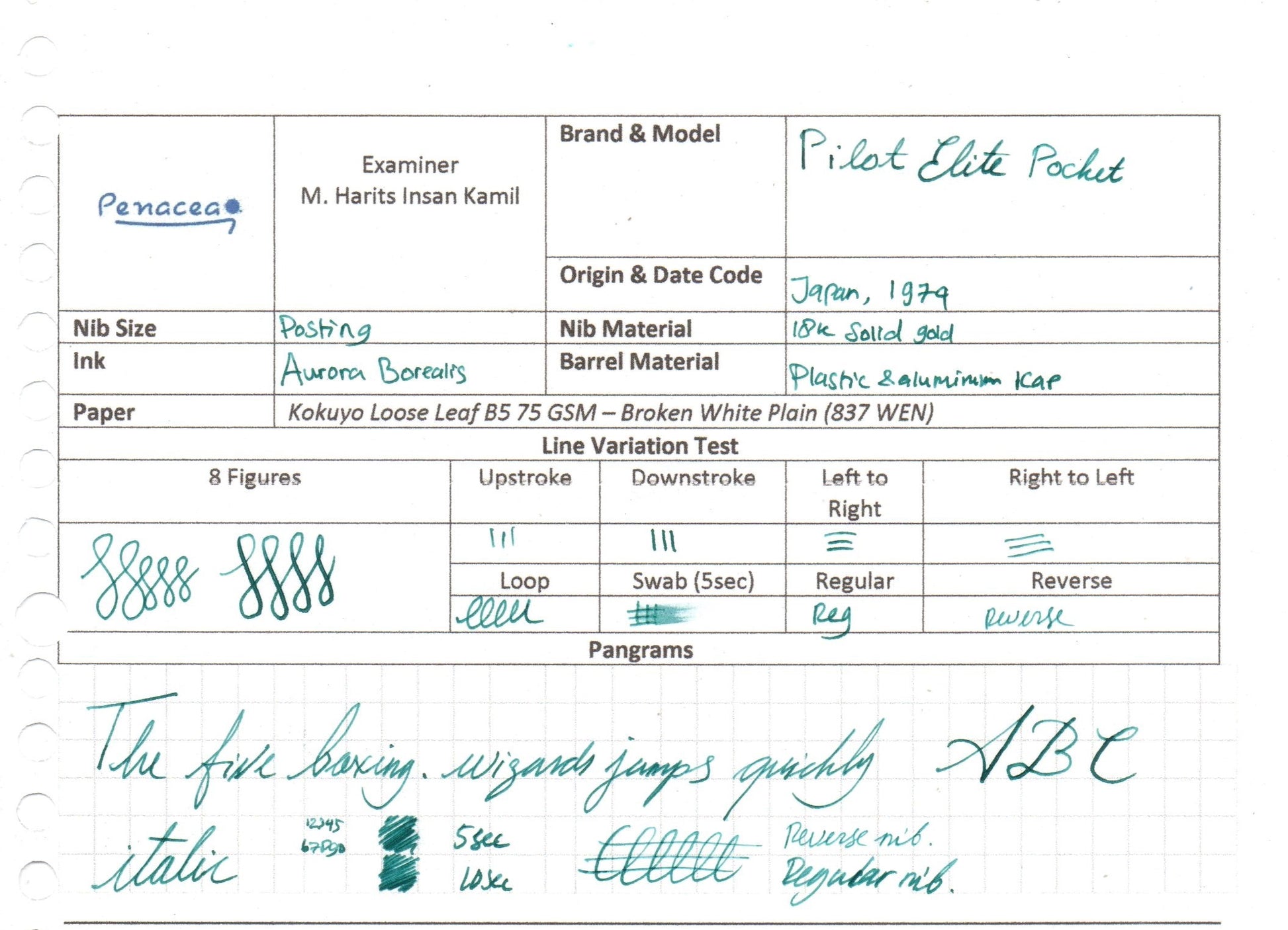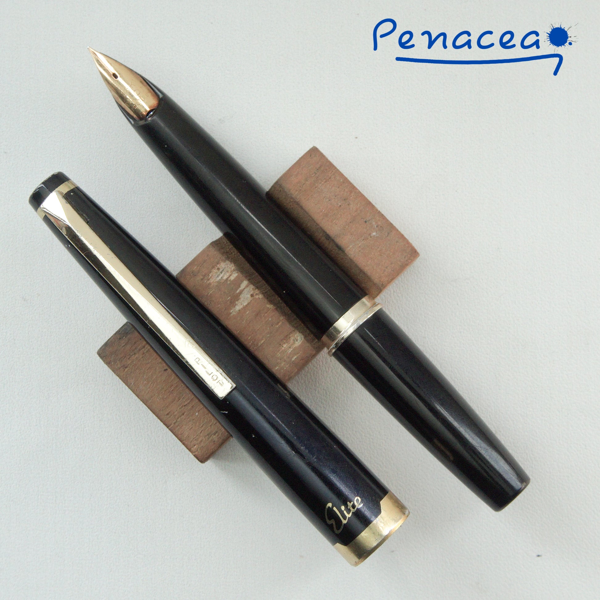 1970's Elite in pocket fountain pen format with 18K fingernail nib, nib are stiff & and rigid. Plain and simple with no line variation & ink flow are moderately dry. few minor scratches on the cap & comes with brand new cartridges.