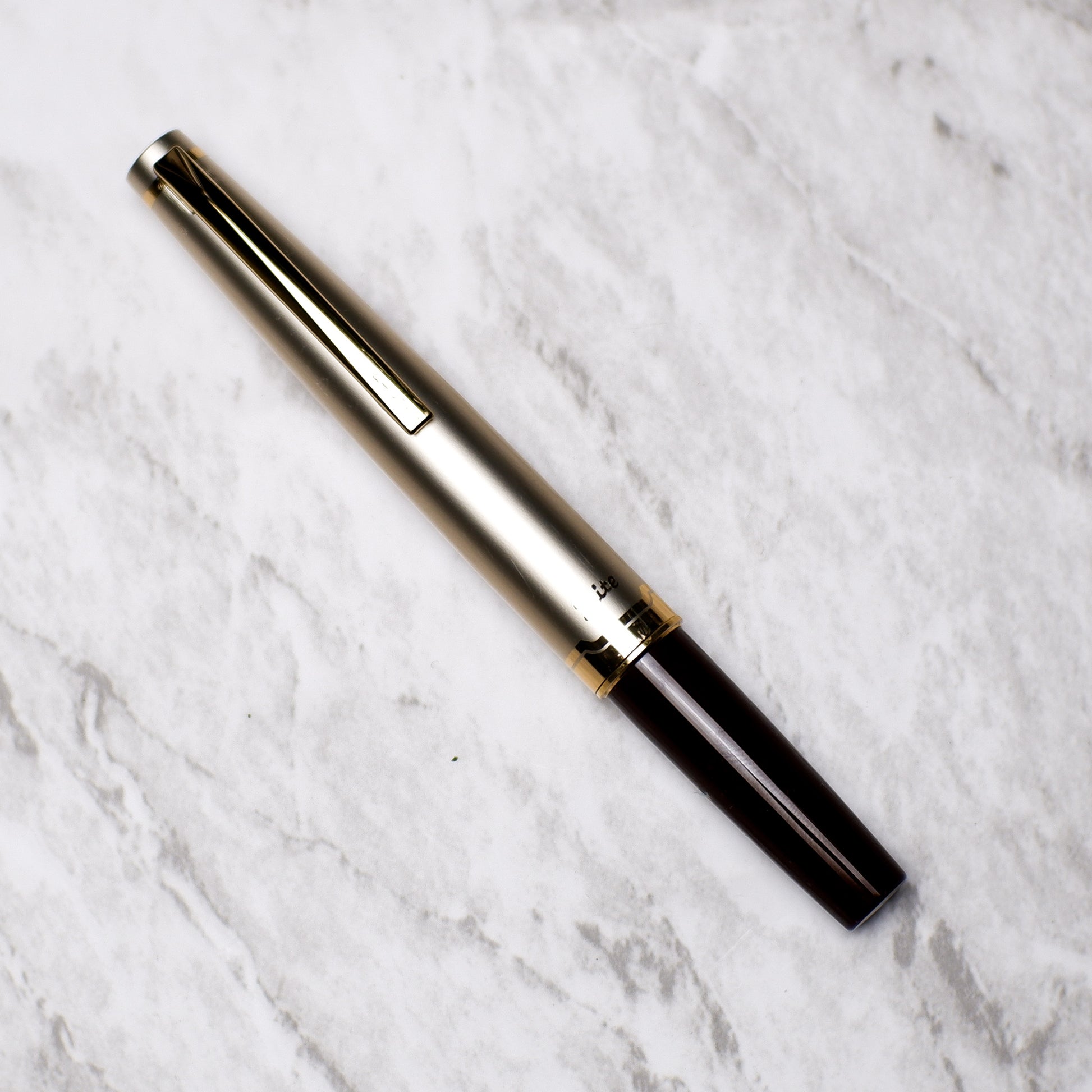 The Pilot E95s pays homage to vintage fountain pens by sporting the sleek, elegant appearance of a vintage 1960s model. Savor the elegance of a fountain pen with a vintage design that features an ivory cap, gold trim, and a slim, lightweight burgundy barrel. This pen's inlaid 14k gold nib, which provides incredibly smooth writing, is one of its unique features. There are few noticeable scratches on the cap, comes with blank Pilot cartridge, shipped without box.