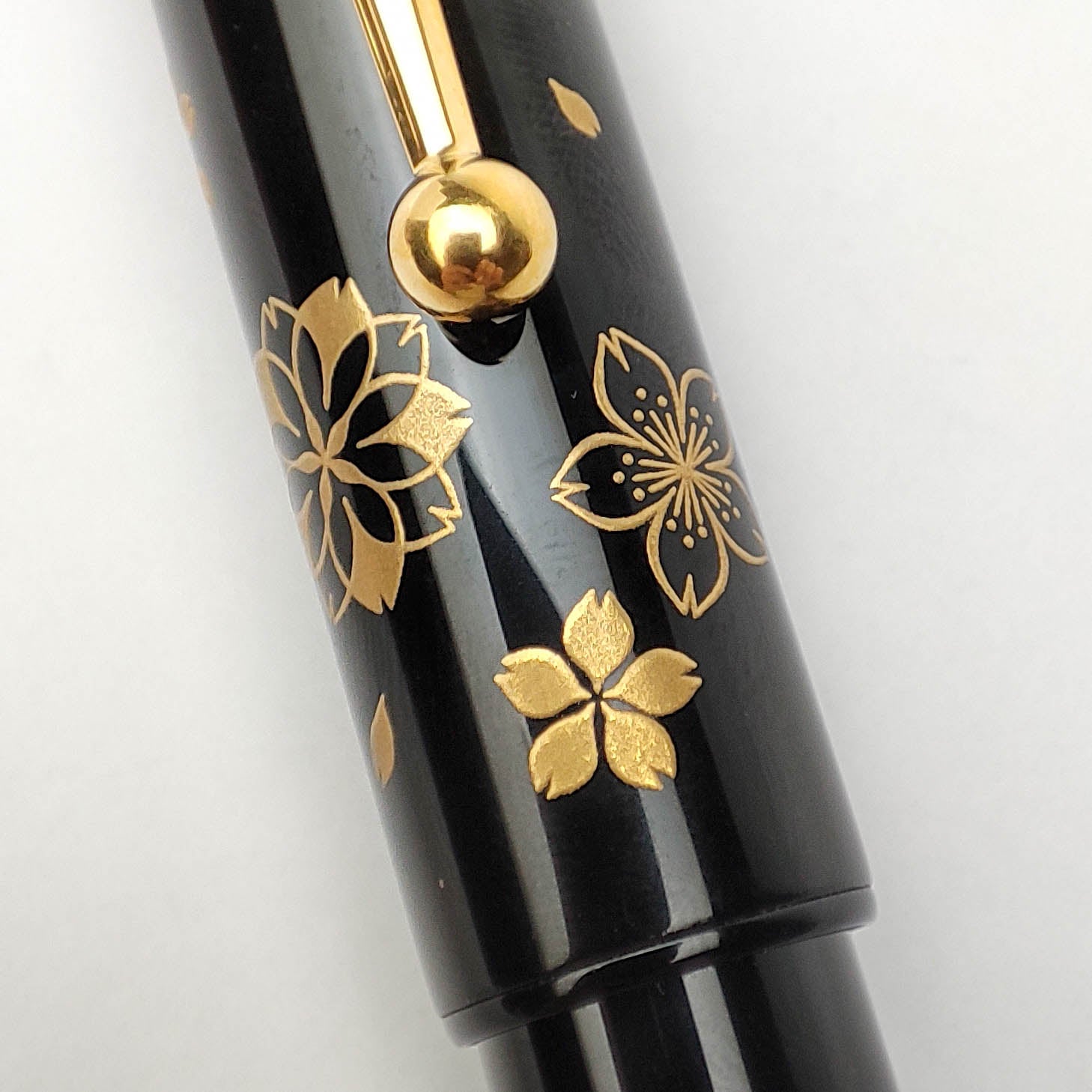 The world of traditional techniques used in Maki-e weaving. One by one, the Maki-e artist creates exquisite patterns using all the luxury and time available. One could still argue that the Maki-e fountain pen, which captured the attention of the world during the early Showa period, is a symbol of Japanese culture. Togidashi Maki-e is used in "Togidashi Hira Maki-e" to finish the background lacquer, while Hira Maki-e is used to finish the main pattern. This pen depict Sakura flower symbolizes both life and death, beauty and violence. As the coming of spring promises new life, so the blooming of cherry blossoms brings a sense of vitality and vibrancy. At the same time, their short lifespan is a reminder that life is fleeting.