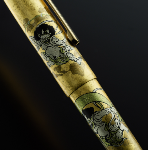 Color Theme : Gold foil makie with image of Japanese Gods of Wind & Thunder