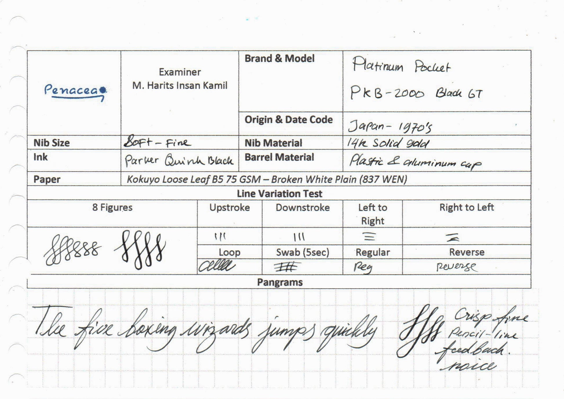 PLATINUM POCKET PKB-2000 BLACK GT FOUNTAIN PEN (1969)