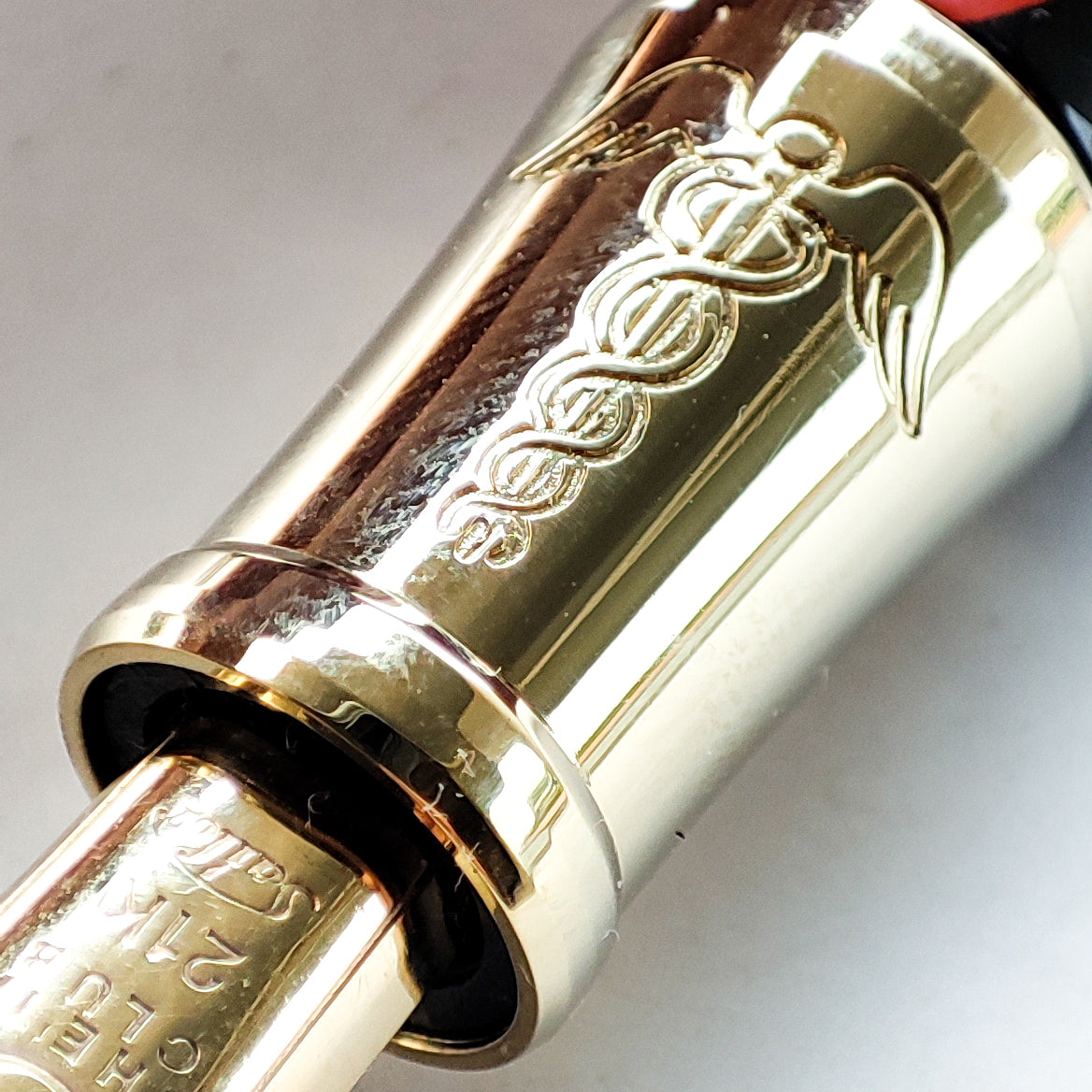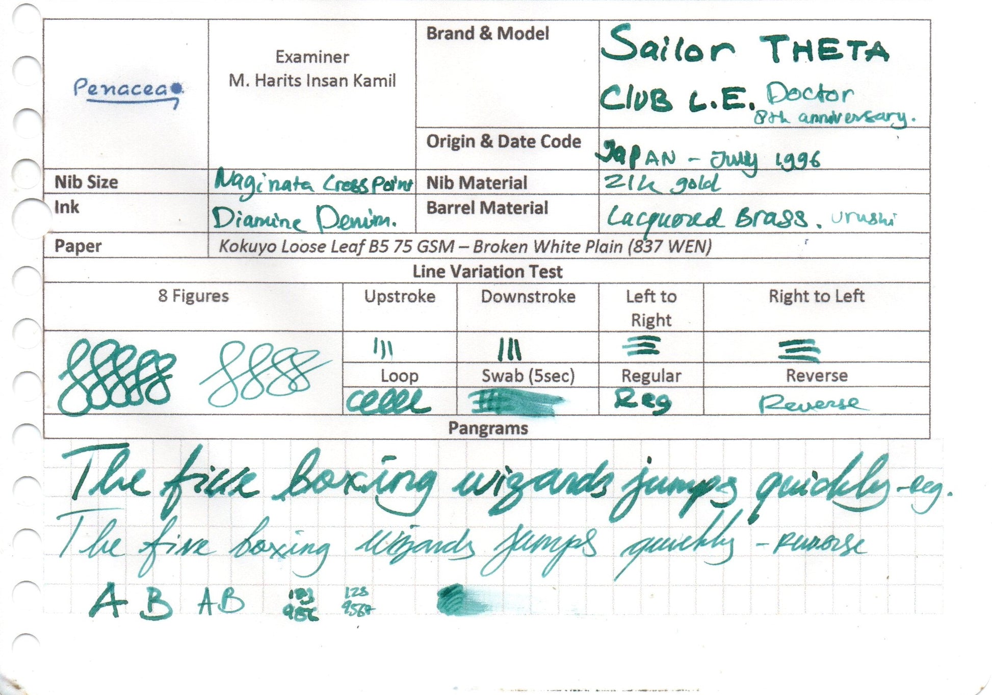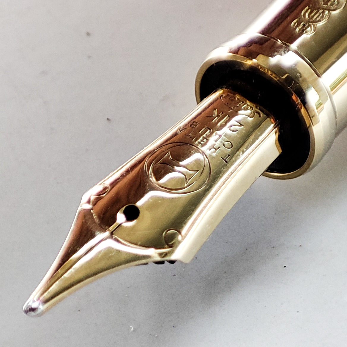 In 1996, Sailor releasing their 85th Theta Club anniversary model with 4 lacquer finishes, it is limited to 5000 pieces worldwide comes with 2 nib model, first one is regular medium nib and the other one is Crosspoint made by Mr. Nobuyoshi Nagahara. This Theta Club features custom nib engraving of THETA symbol and Rod of Asclepius, there is paint chipping on the top cap, comes with box, pair of 2 fresh Sailor ink cartridges.