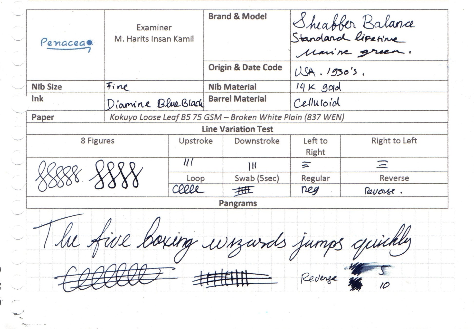 First debuted in 1929, Sheaffer Balance with lever filler are the most common filling system you can find on the market. This variant is the early version of balance which still uses the 'ball-humped clip'. There are personalization on the barrel and imprints are crisp. When we talked about how the nib performs, it quite firm and wet, plain and simple for every day carry.