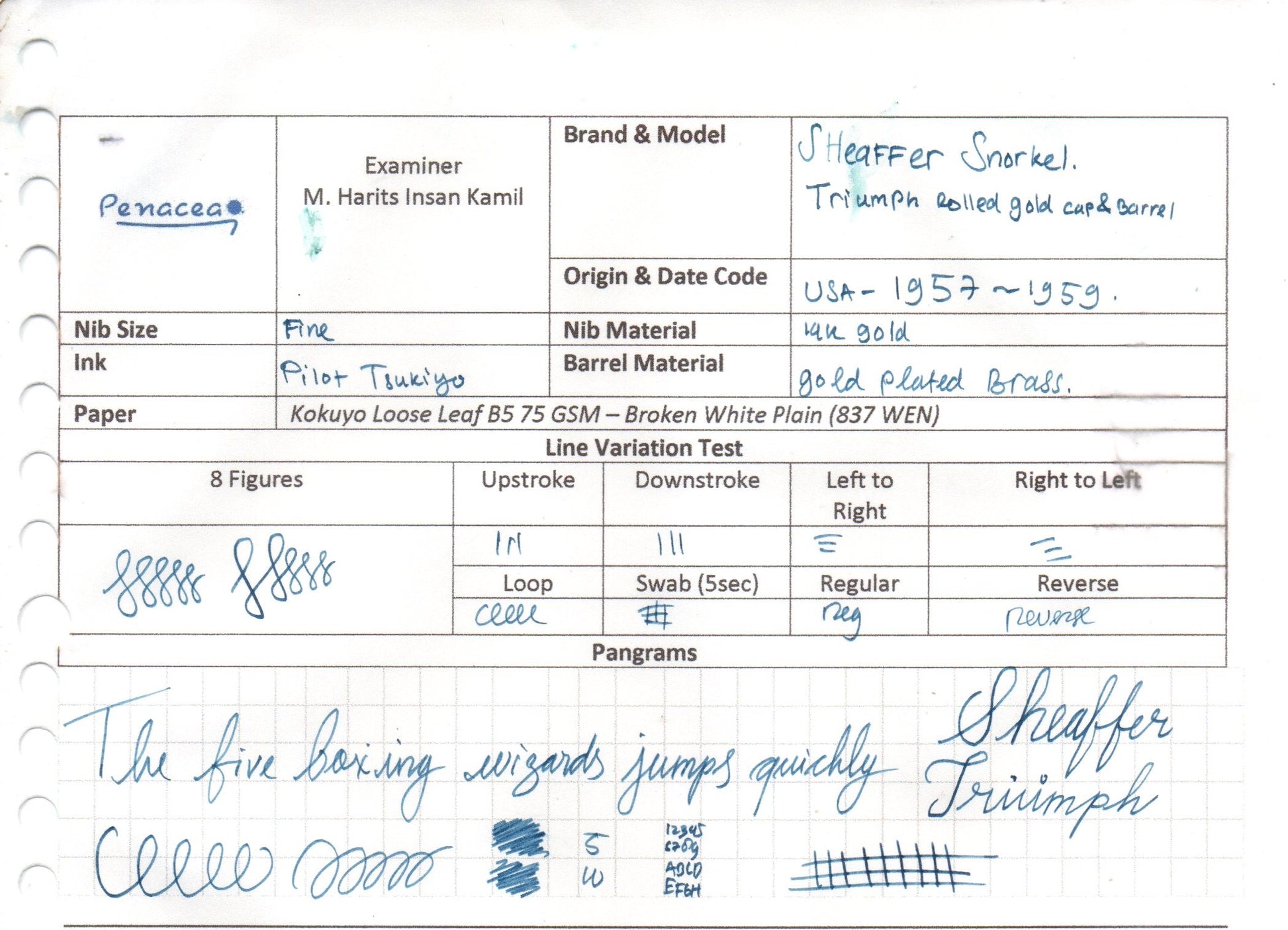 Released around 1955-1959 featuring two-tone platinum plated over 14K gold nib, white dot and five vertical lines group circling around the barrel. There are two version of the Triumph, first batch could be identified by its blank space intended for personalization / engraving on the cap while the later production swap its blank space right on the main pen barrel. This 2nd gen Snorkel Triumph already restored to working condition (inksac, O-ring replacement)