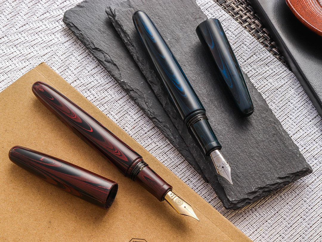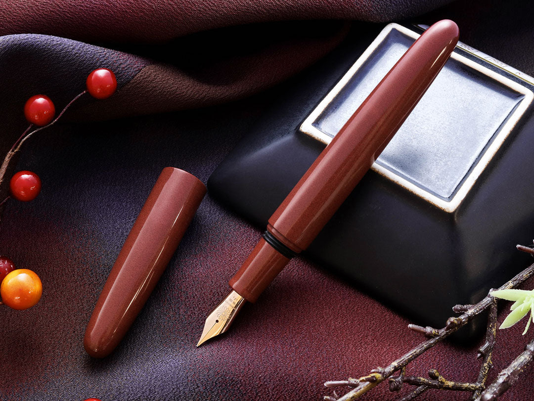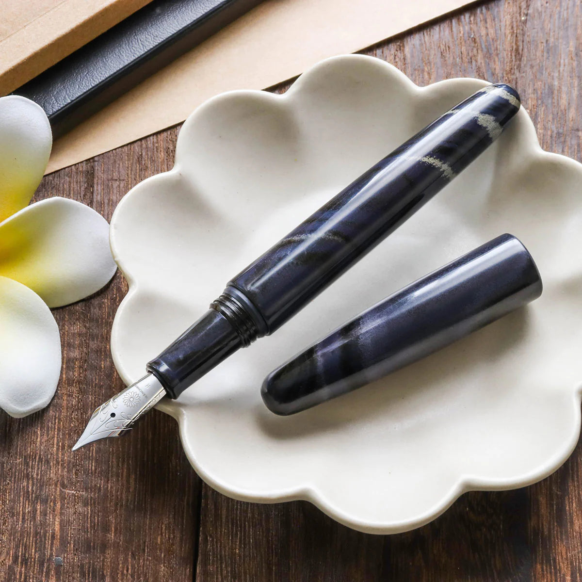 A true Ebonite fountain pen with true values of Japanese traditional arts. The making process of True Ebonite fountain pens requires many handcrafting steps. Therefore, the thickness of the pen will vary slightly along the pen body and the cap's finial. Each pen are different from one to another.