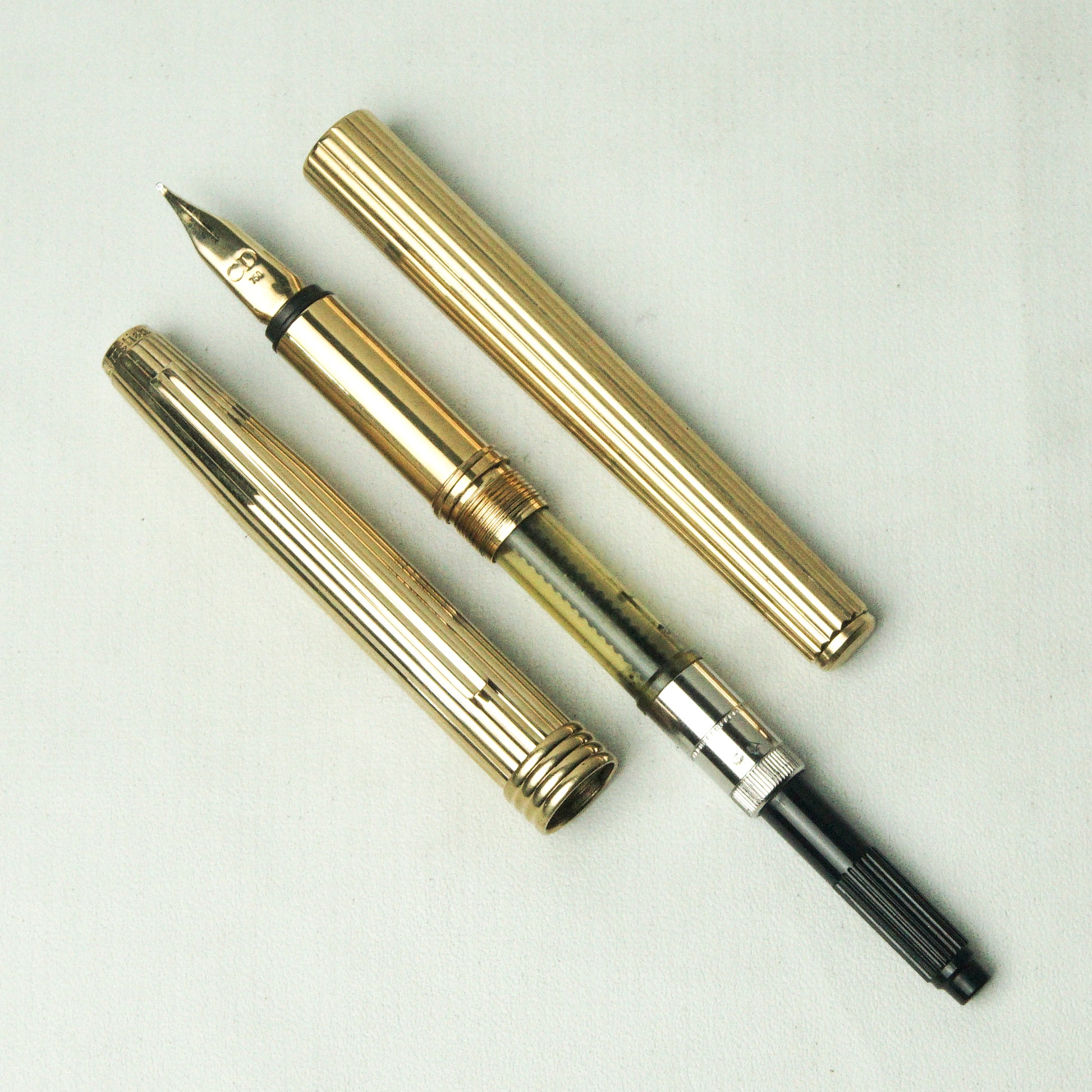 CHRISTIAN DIOR LOGO FLUTED GOLDPLATED FOUNTAIN PEN (1980s)