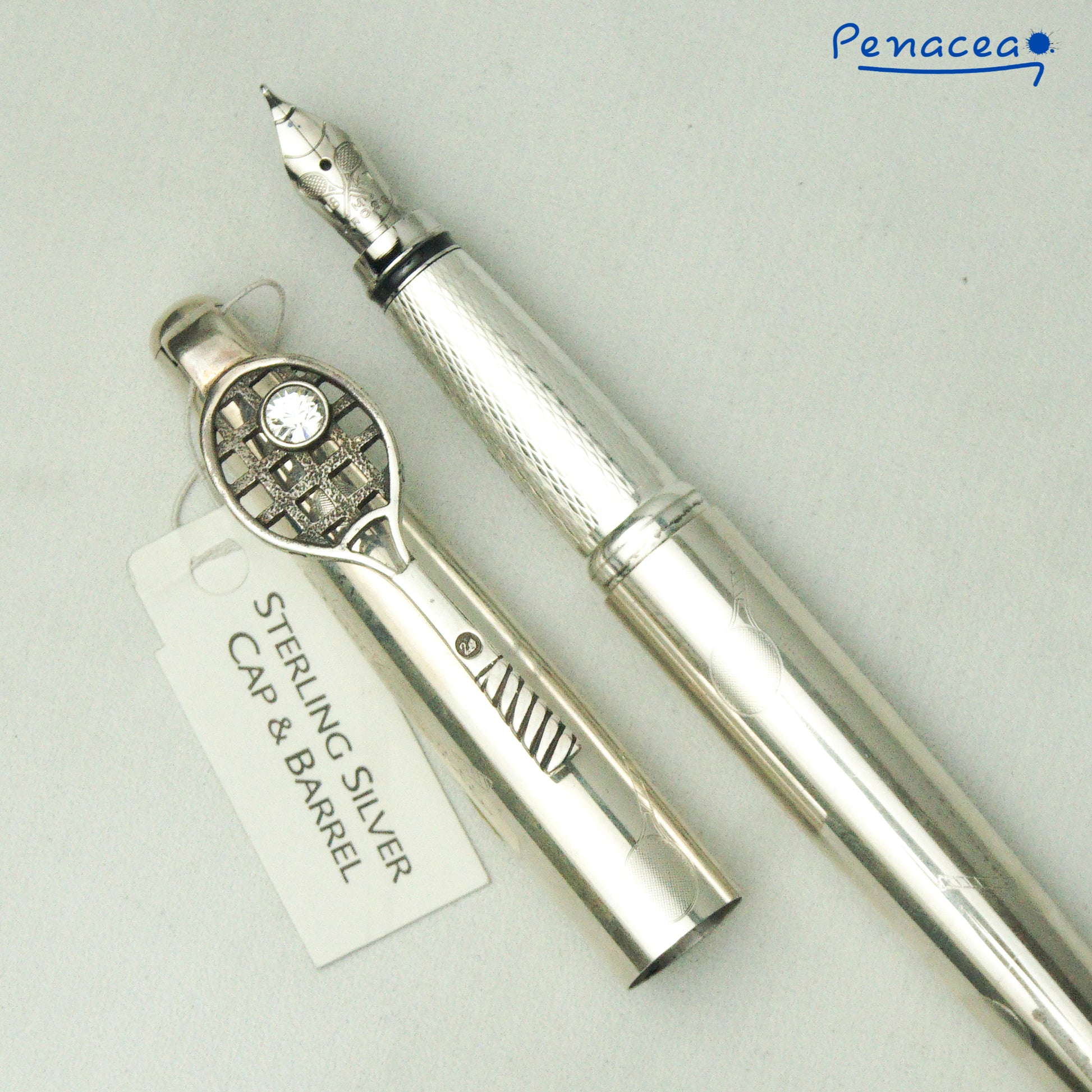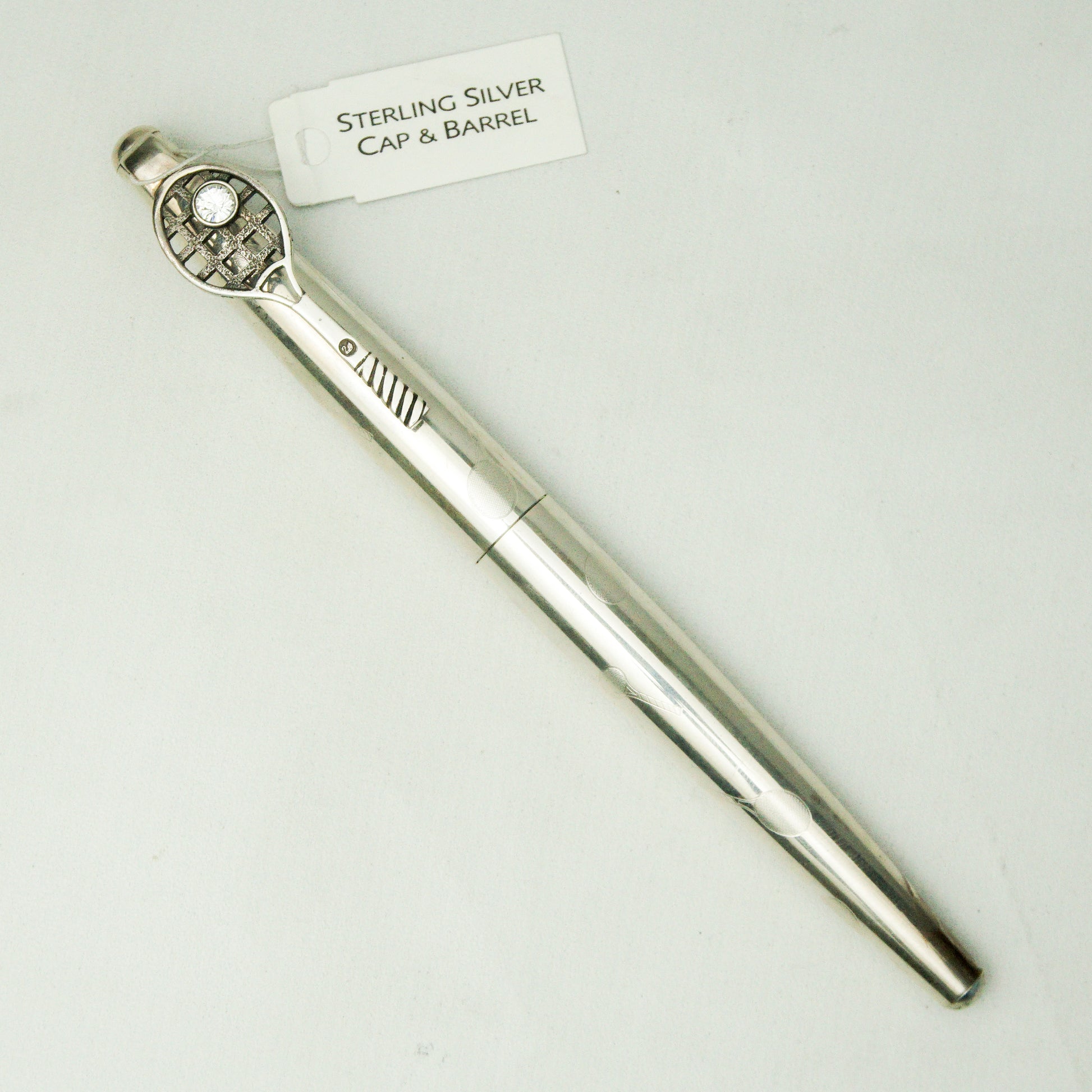 With an inspiring commemorative collectable, CROSS is honored to honor the game of tennis and the 50th anniversary of the International Tennis Hall of Fame. AWARDED TO ALL INDUCEES OF 2004 STEFAN GRAPH, STEFAN EDBERG, AND DOROTHY CHENEY, APART OF THE HALL OF FAME. Crafted from hallmarked solid sterling silver, this unique fountain pen has exquisite engravings of vintage tennis rackets. The pen's distinctive features include a solid 18-karat gold nib that is plated in brilliant rhodium, a spring-loaded clip that showcases a Swarovski crystal, and a signature swan logo on the handle of the racket. Pen is in NEW OLD STOCK condition, fullset with paper, tag, silver polishing cloth and wooden box, Limited edition #0242/1954.