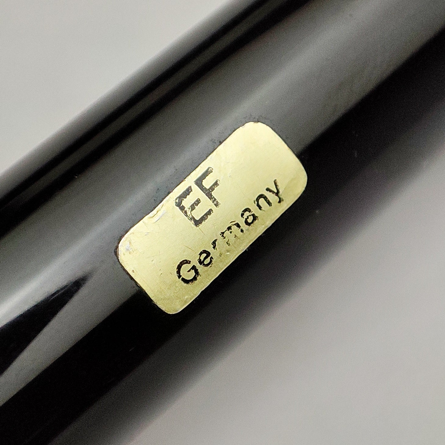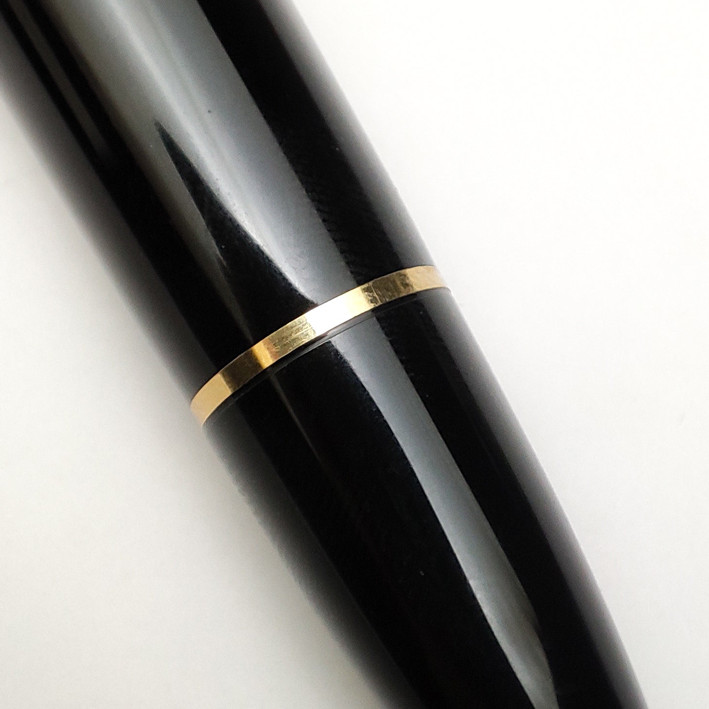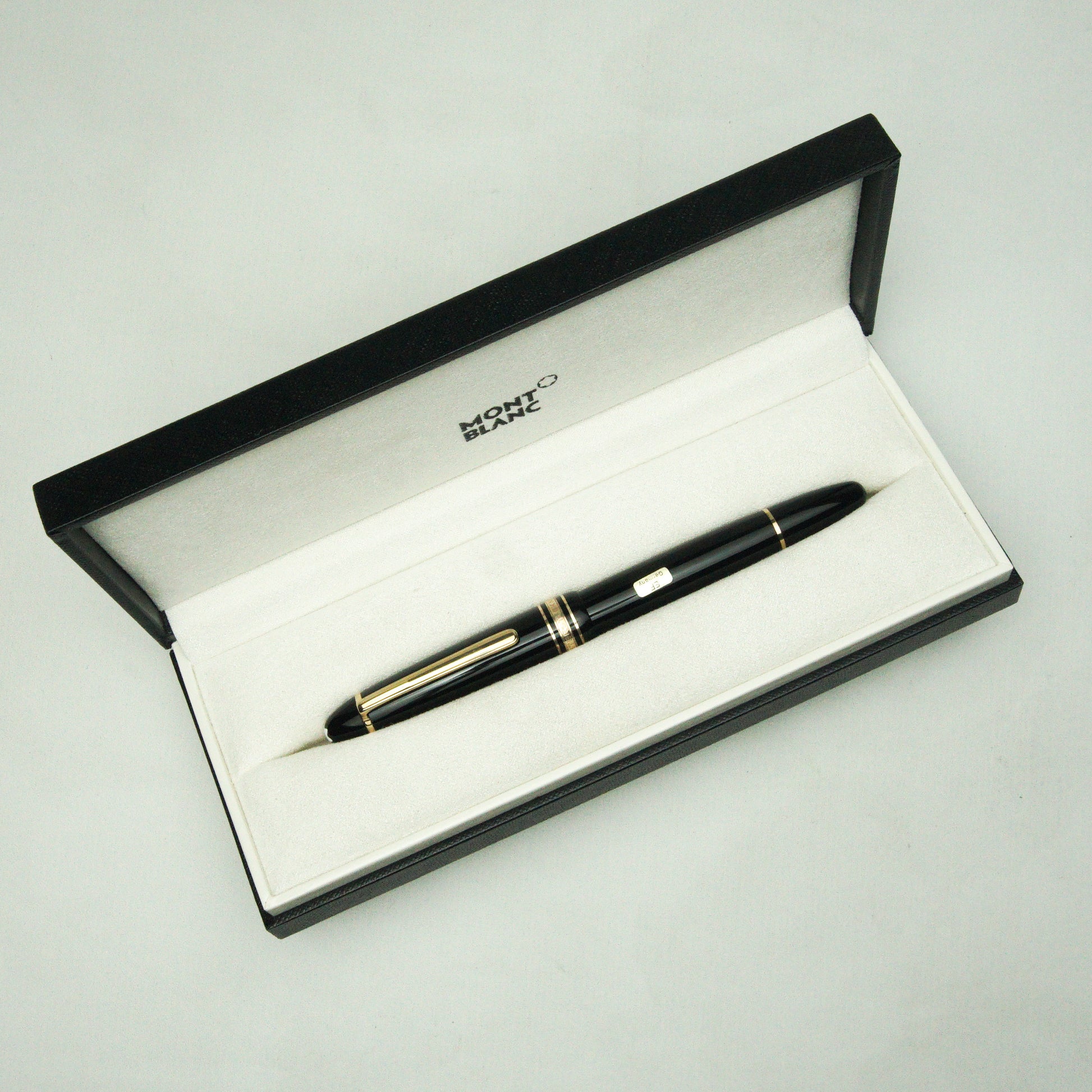 New Old stock, stickered Montblanc 146 with striped ink window, early plastic feed with 'bridge', Two-tone 14K gold nib, Plain with no serial number engraving & W-Germany and slightly curved clip with total length (with cap on) of 142mm instead of 146mm and brass piston. uninked and comes with replaced box.