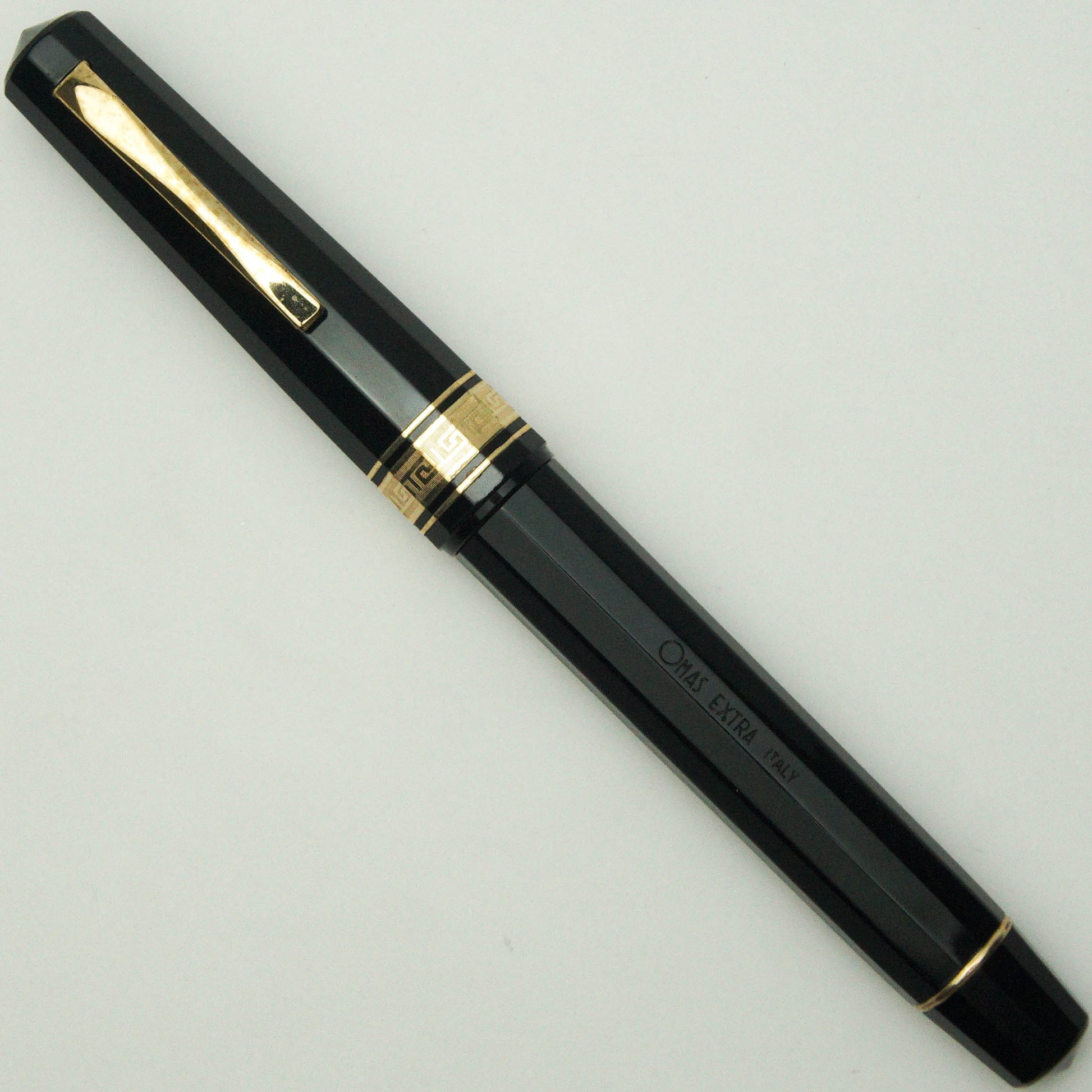 New old stock Omas Extra with oldstyle clip, fitted with 18K two-tone gold nib with medium tipping and ebonite feed. Pen only without box & paper, will be shipped with replaced box.