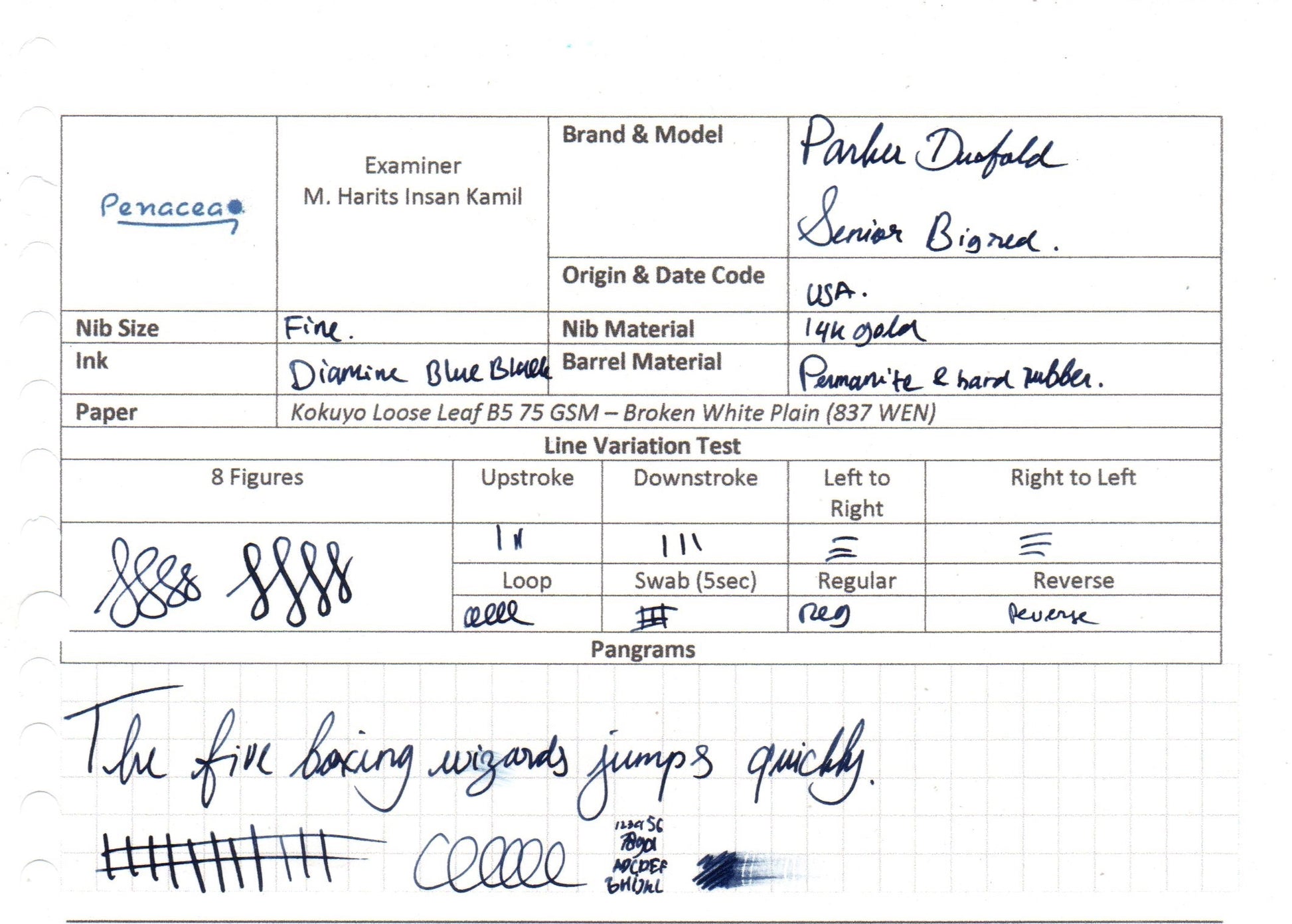 Duofold in senior size and the largest among all (bigger than streamline version from the 1930s) from permanite made from 1926 to 1929. There are slight brassing on the clip and cap band, minor discoloration on the cap top & blindcap and small chipping near the posting thread and also minor crack on the thread (cap threading still secure). Pen has been thoroughly cleaned, adjusted and fitted with new ink sac, Nib is rigid with fine strokes.