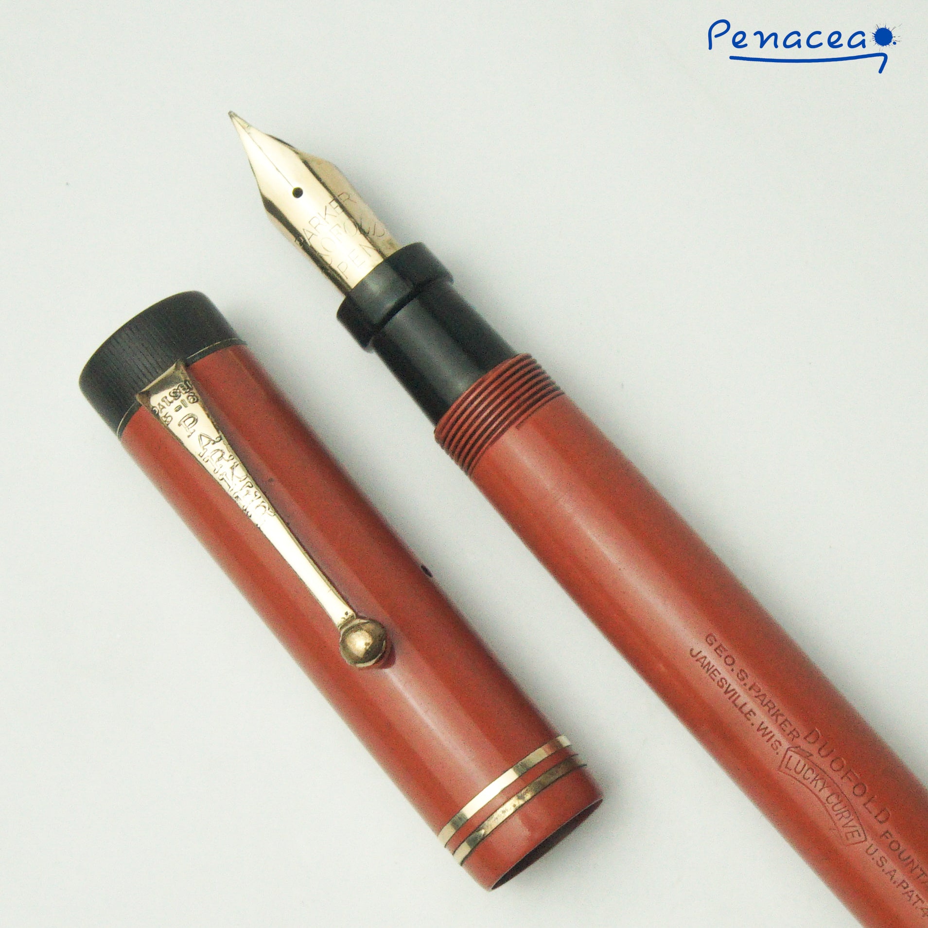 PARKER DUOFOLD LUCKY CURVE SENIOR RED PERMANITE FOUNTAIN PEN (1928)