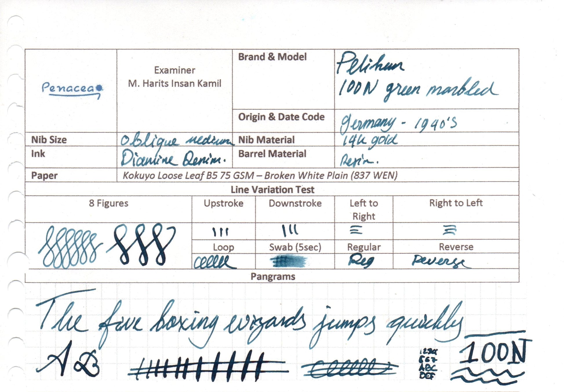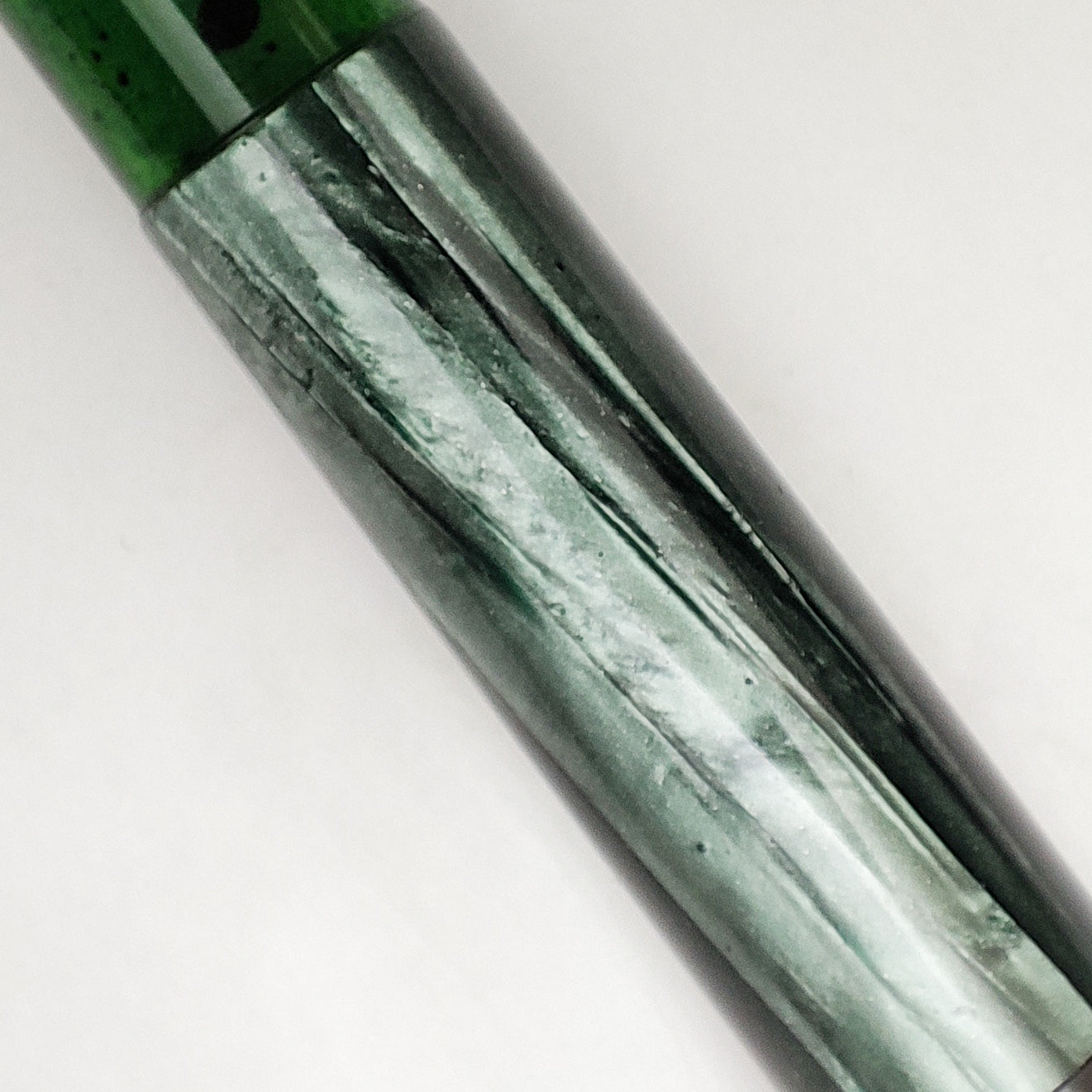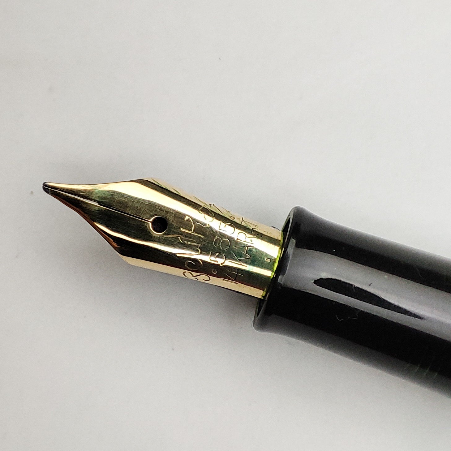 The next generation of Pelikan 100, the first model of Pelikan 100N (celluloid and ebonite cap) still bear Pelikan 4 chicks logo and released in late 1930's, This pen were so iconic and Pelikan made a reissue model in 2011 to 2019 (M101N). This Green Marbled Pelikan 100N is in excellent condition with no cracks or tear in barrel binde, the imprints on the cap top a bit worn-off, fairly wet and capable of doing line variation from M to BB.