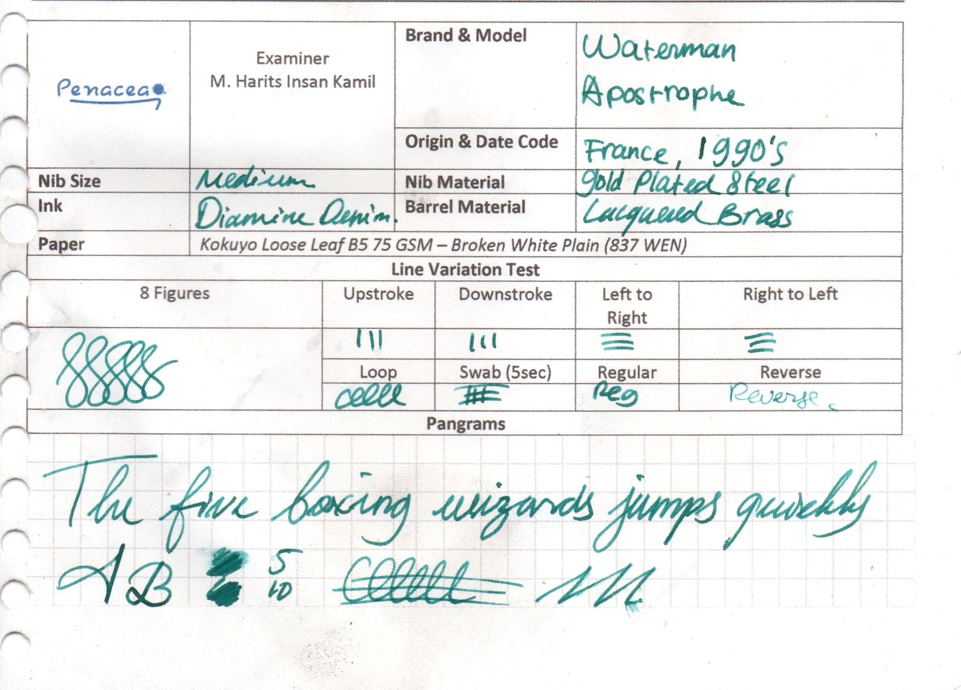 WATERMAN APOSTROPHE BLACK GT FOUNTAIN PEN (1995)
